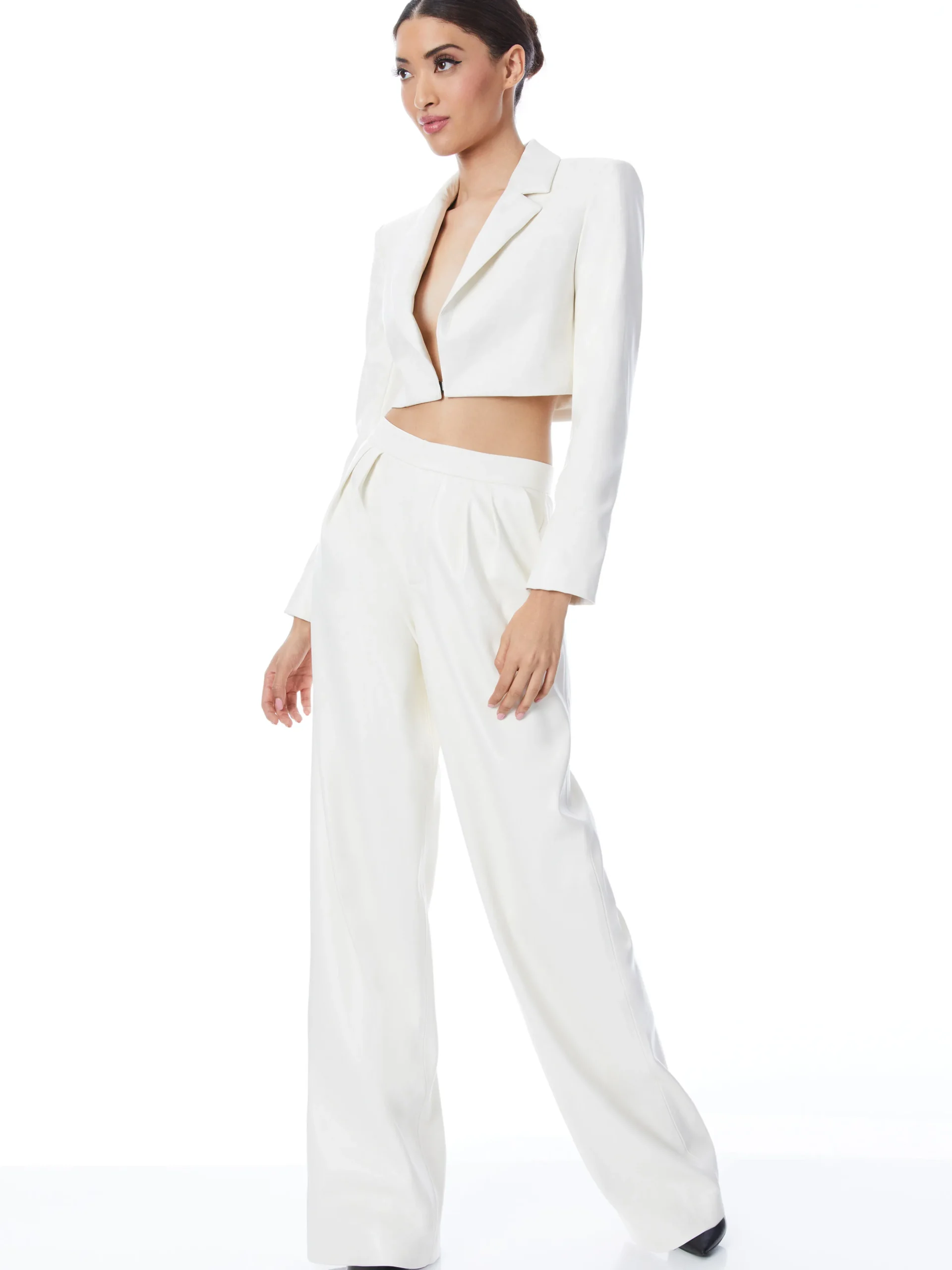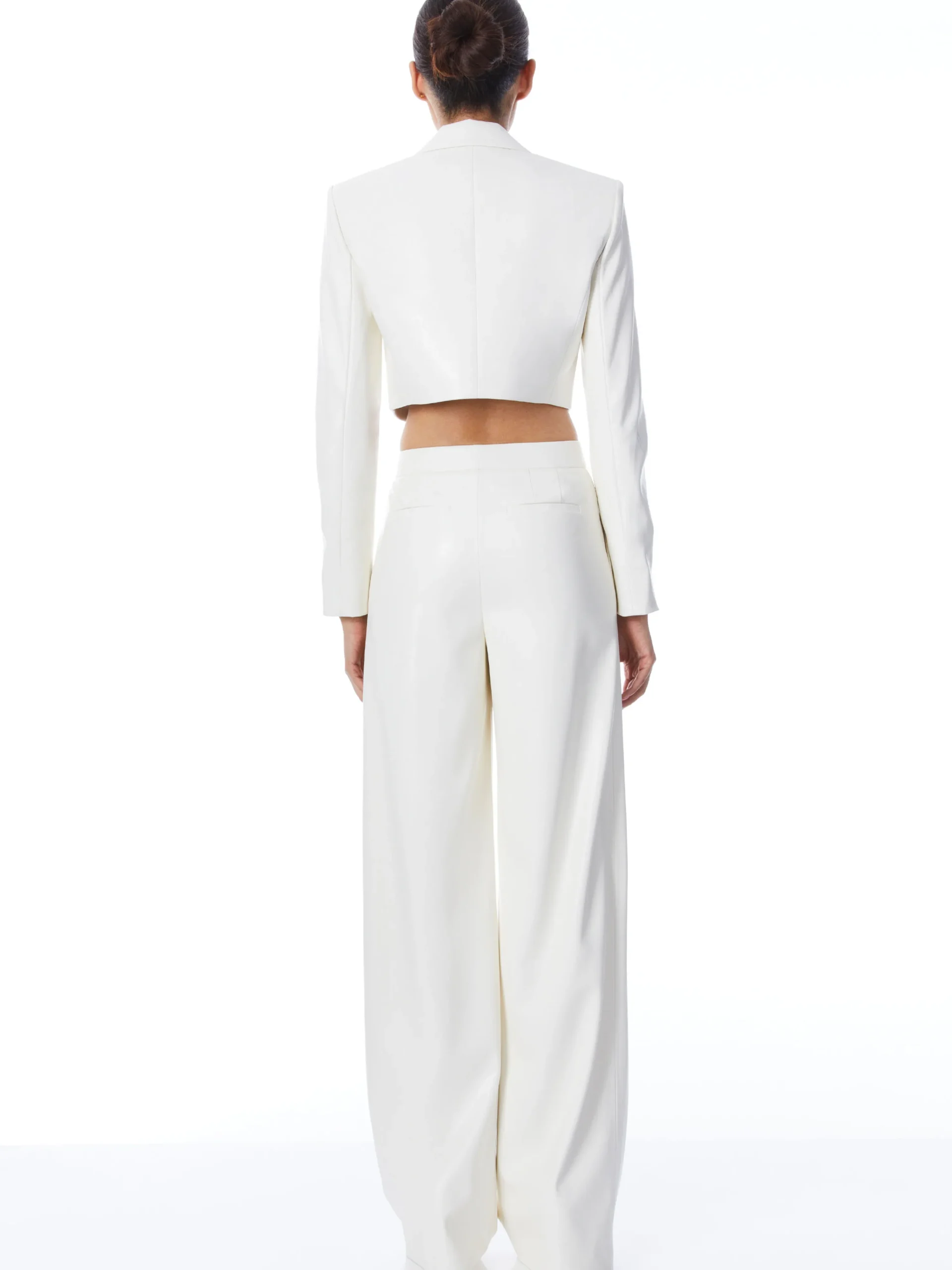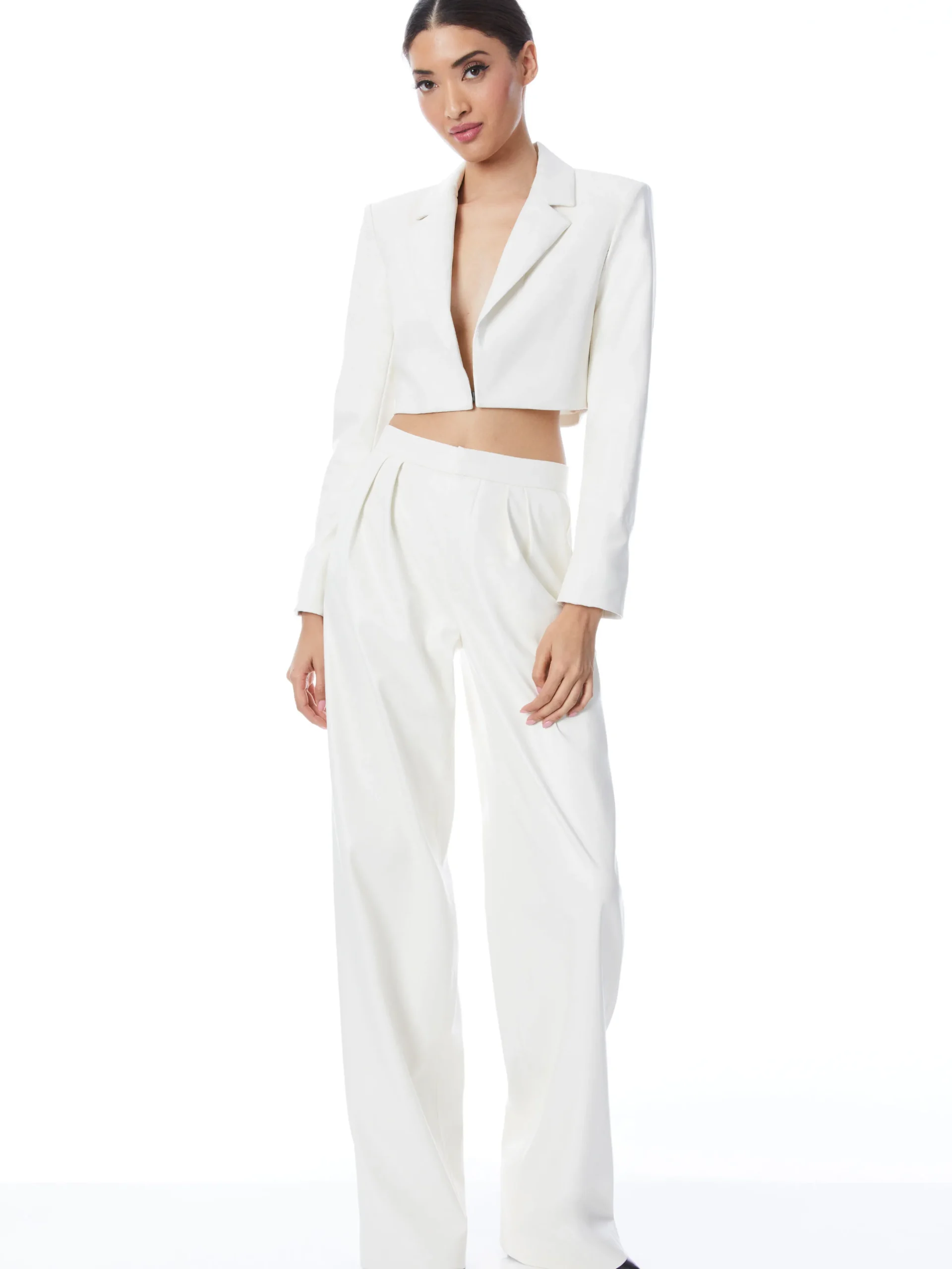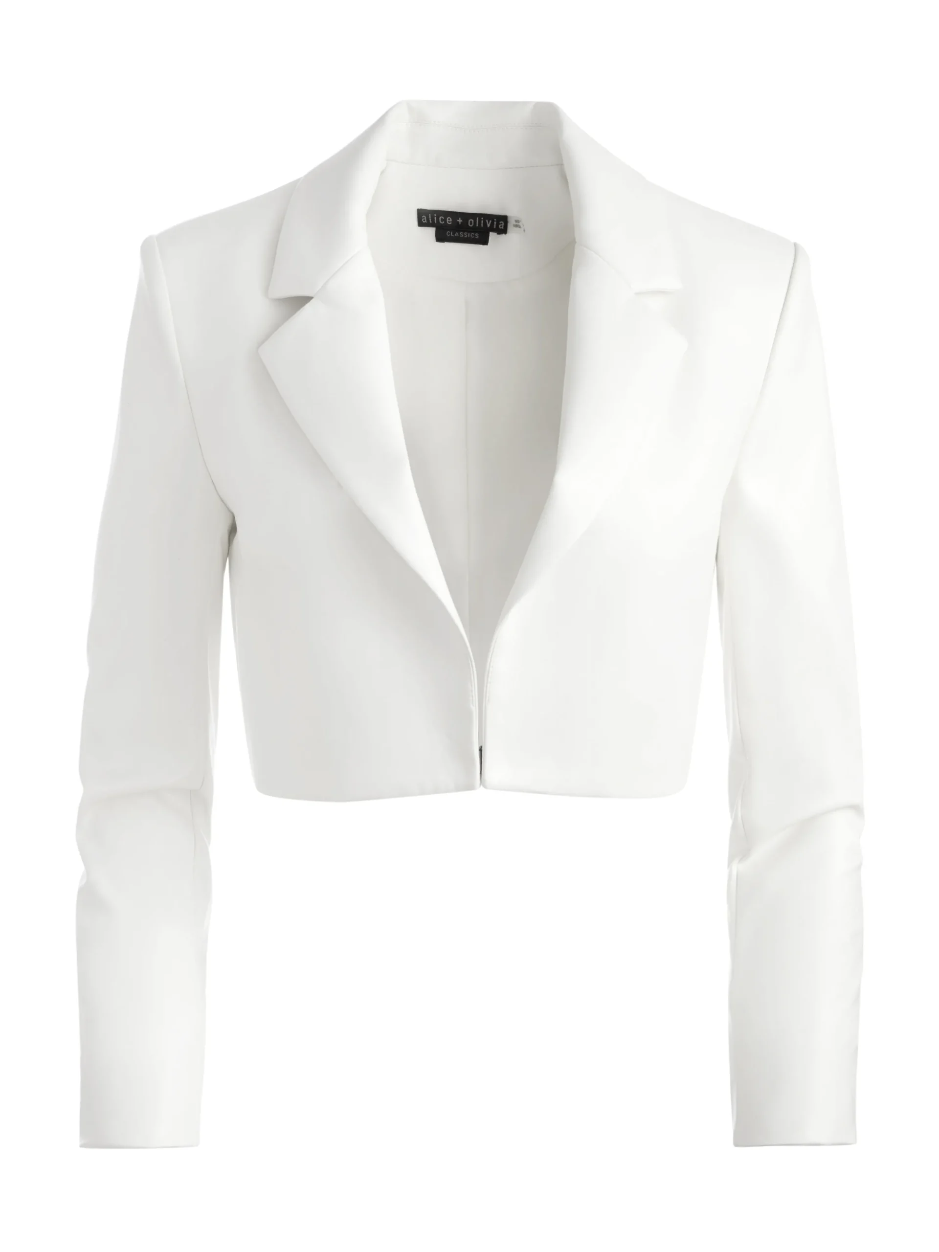 Alice and Olivia ABBOTT CROPPED RUCHED SLEEVE VEGAN LEATHER BLAZER ECRU*FEATURED SHOPS | FEATURED SHOPS | CLOTHING
