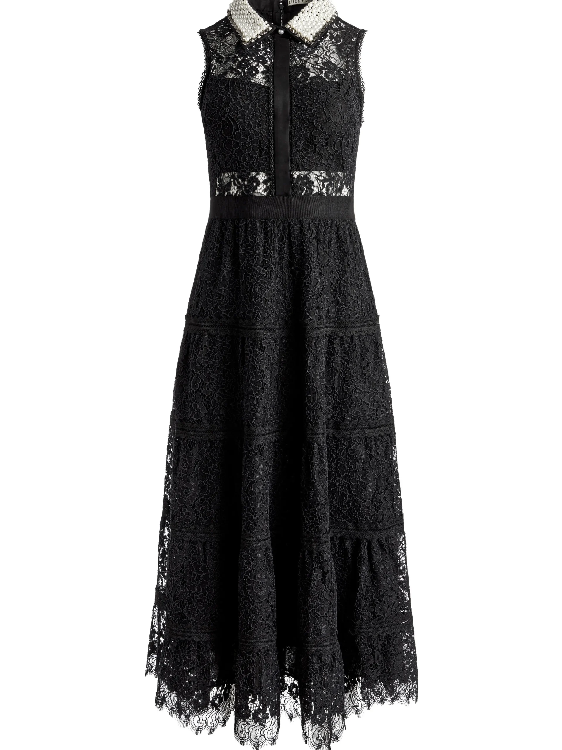 Alice and Olivia ANAYA EMBELLISHED COLLAR LACE MIDI DRESS BLACK*FEATURED SHOPS | DRESSES | DRESSES | CLOTHING