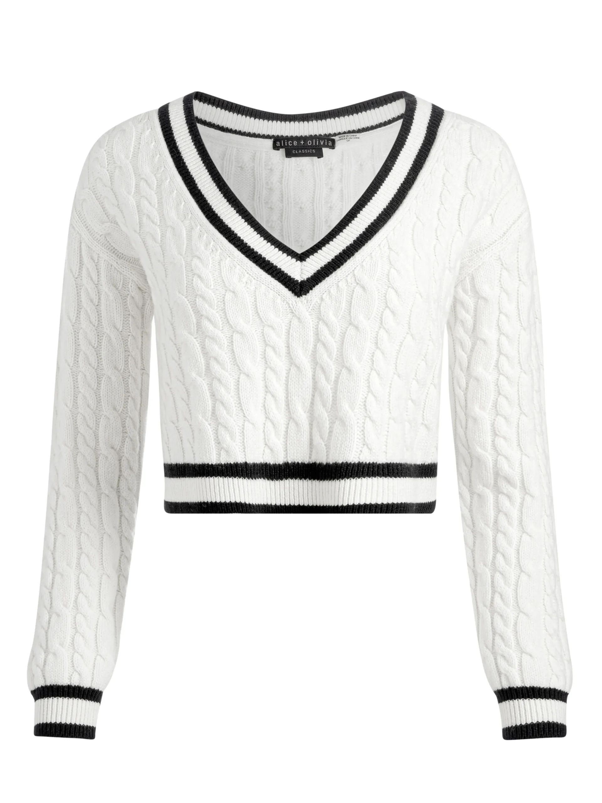 Alice and Olivia AYDEN CROPPED V-NECK PULLOVER ECRU/BLACK*FEATURED SHOPS | CLOTHING