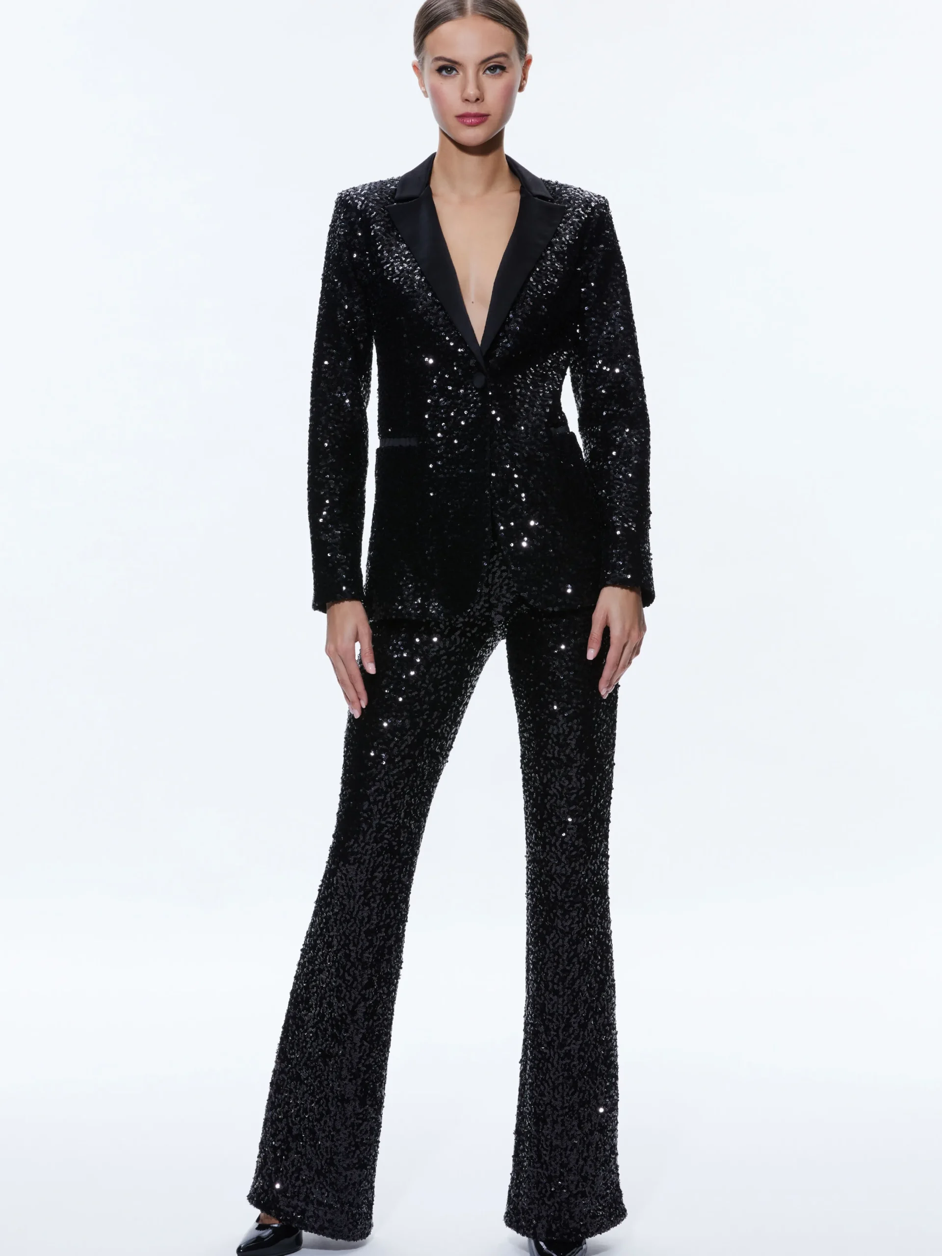 Alice and Olivia BREANN SEQUIN FITTED BLAZER BLACK*CLOTHING