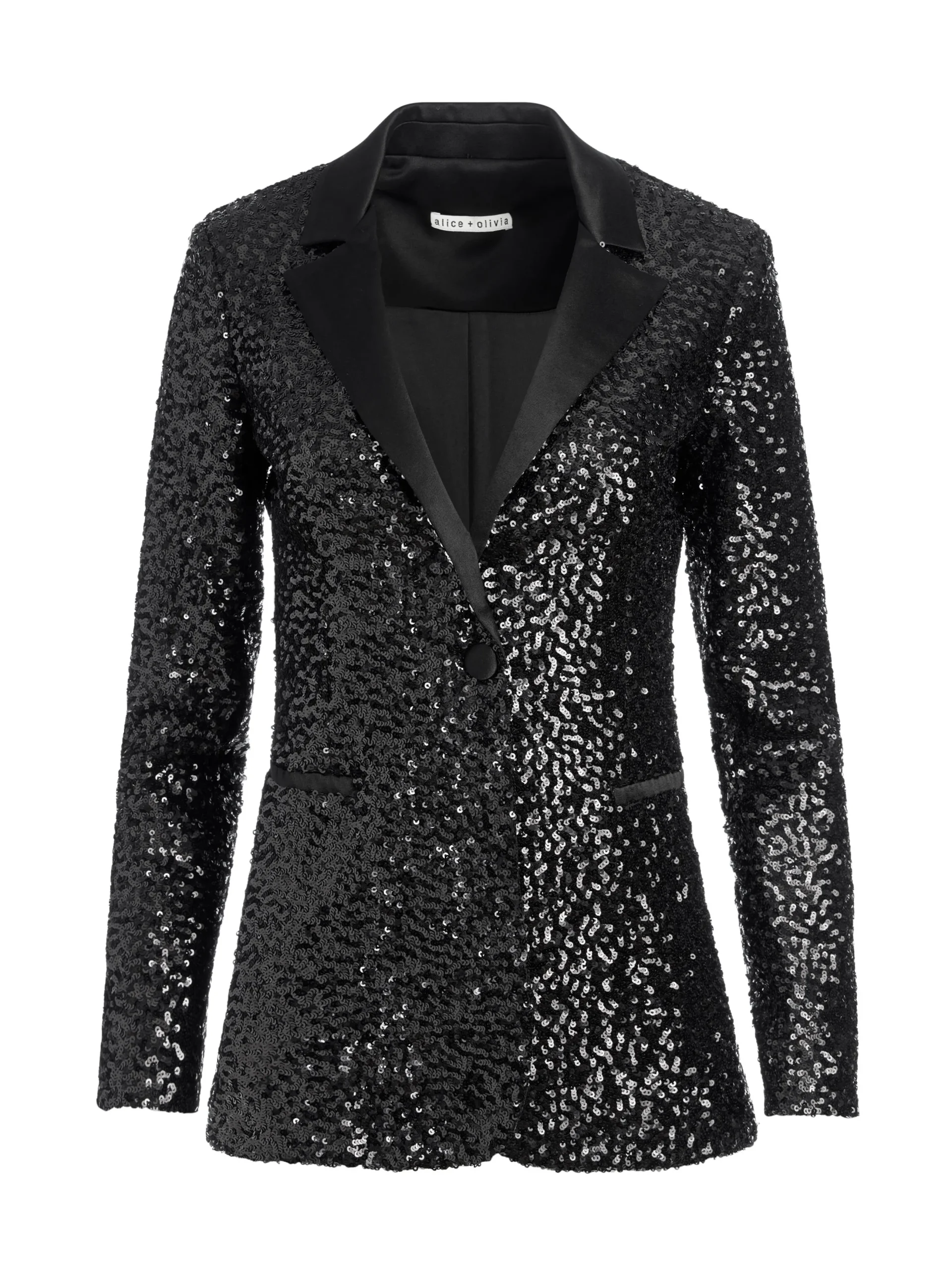 DescriptionOur signature slim-cut blazer, now covered in sequins, quickly elevates your look to boss babe status. This o…