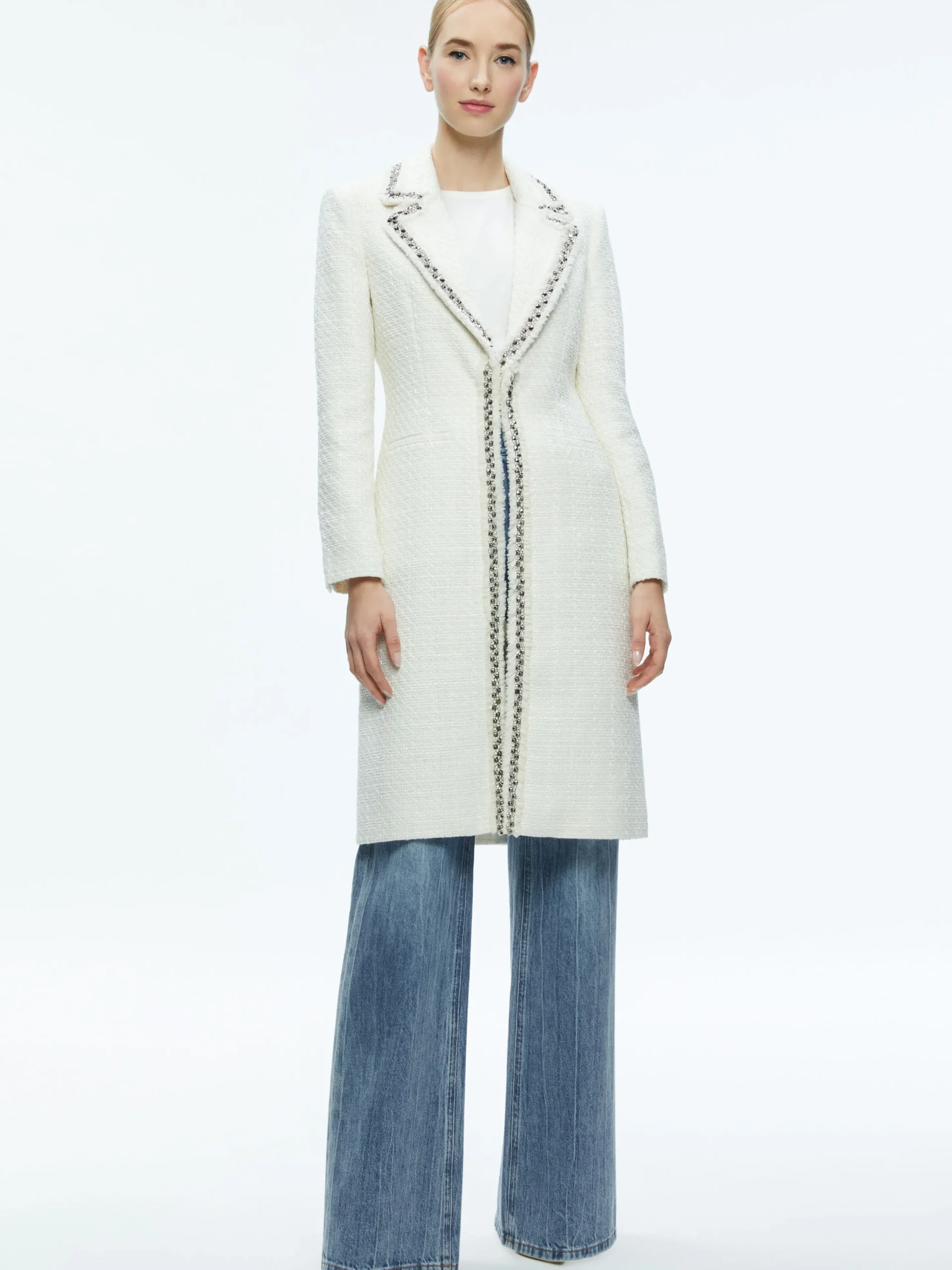 Alice and Olivia BRET EMBELLISHED LONG BLAZER OFF WHITE*FEATURED SHOPS | FEATURED SHOPS | CLOTHING