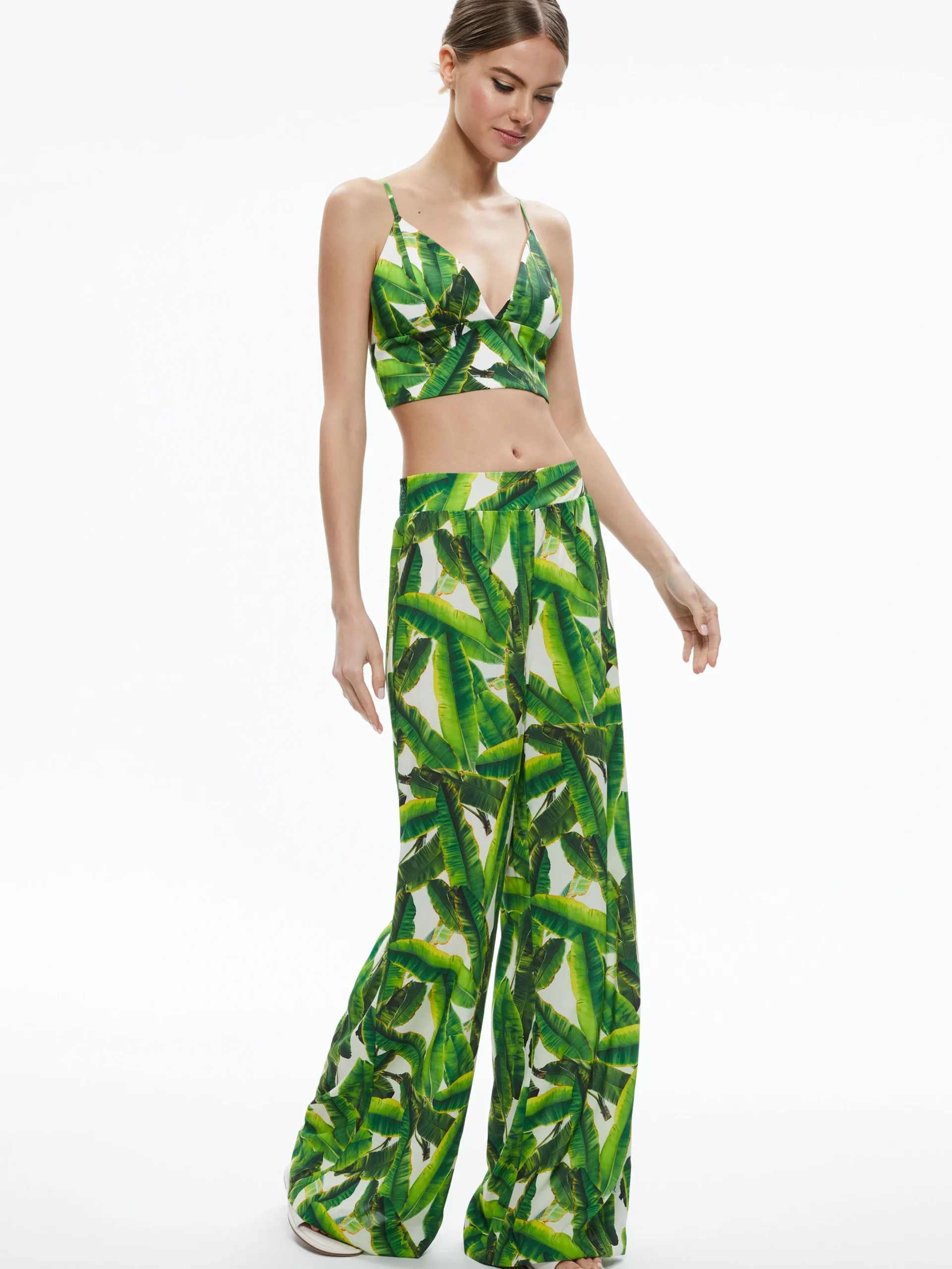 Alice and Olivia CARLI TIE BACK BRA TOP + RUSSELL HIGH WAISTED SMOCKED WAISTBAND PANT *CLOTHING