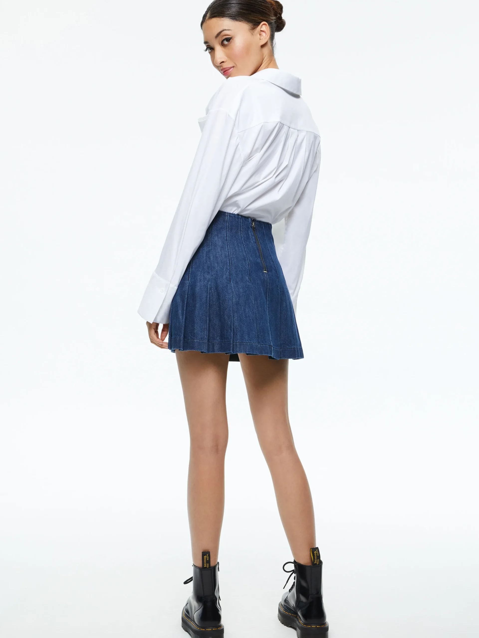 Alice and Olivia CARTER PLEATED DENIM MINI SKIRT *FEATURED SHOPS | CLOTHING