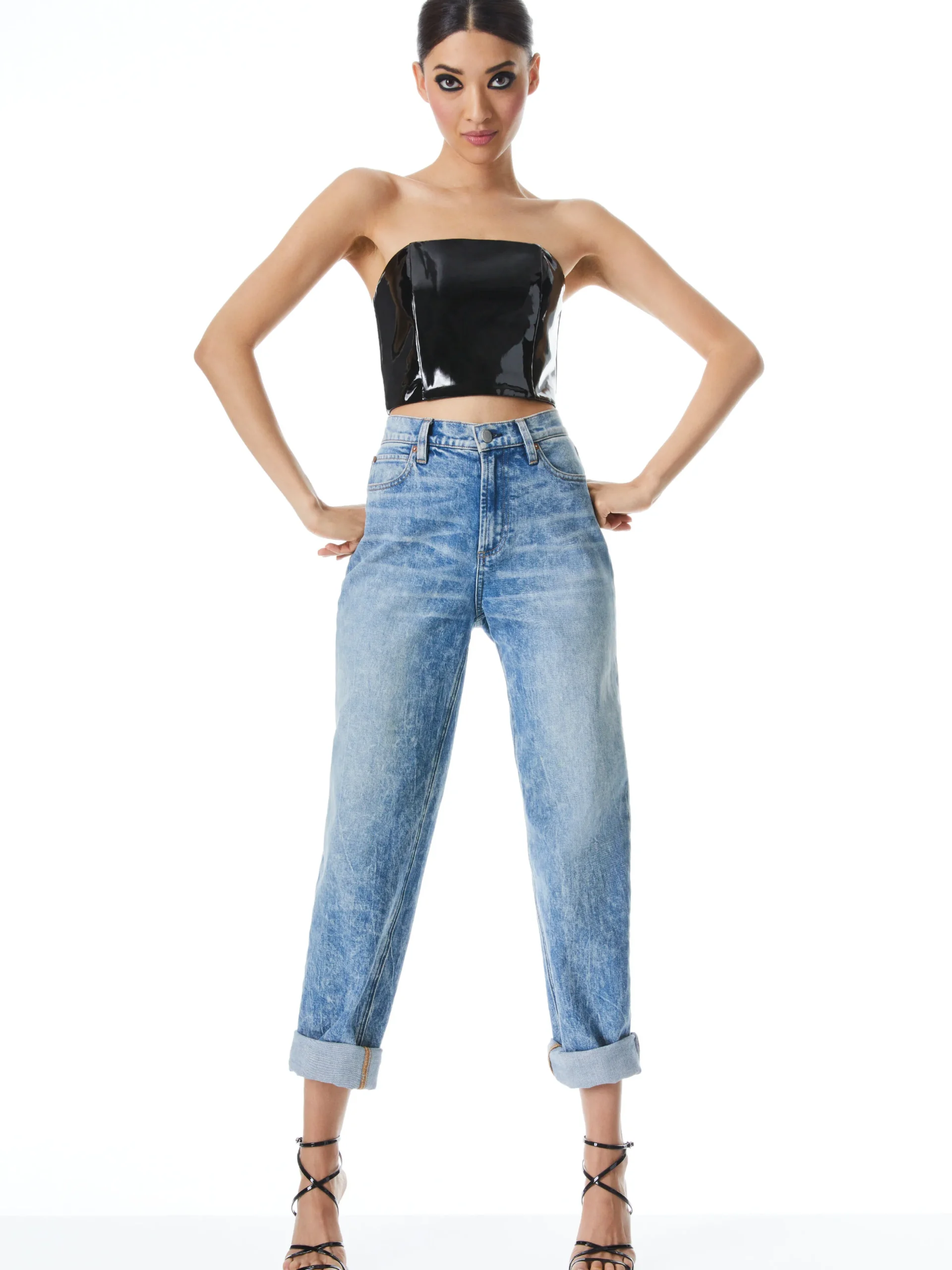 Alice and Olivia CERESI LATEX BANDEAU TOP BLACK*CLOTHING