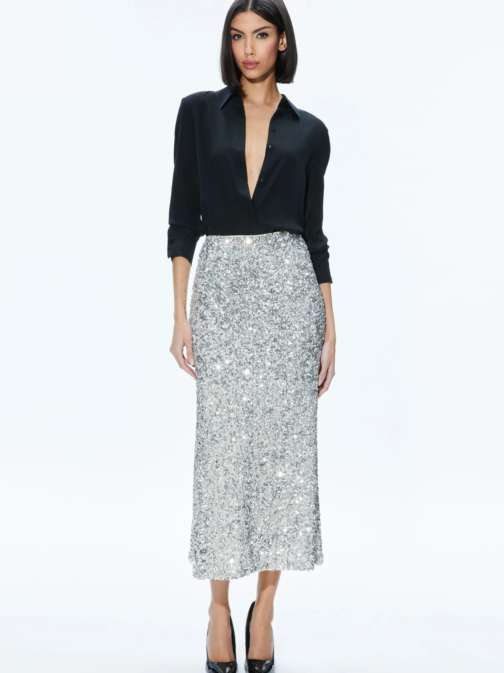 Alice and Olivia CERESI SEQUIN BANDEAU CROP TOP + MAEVE SEQUIN SLIP SKIRT *CLOTHING