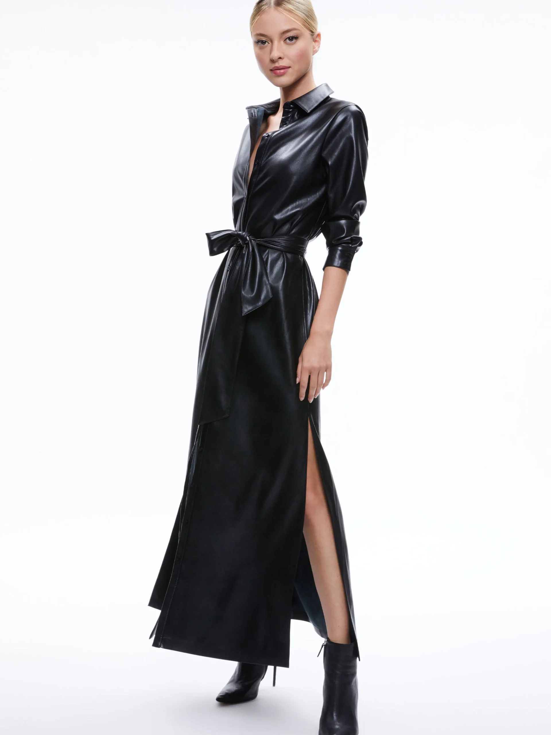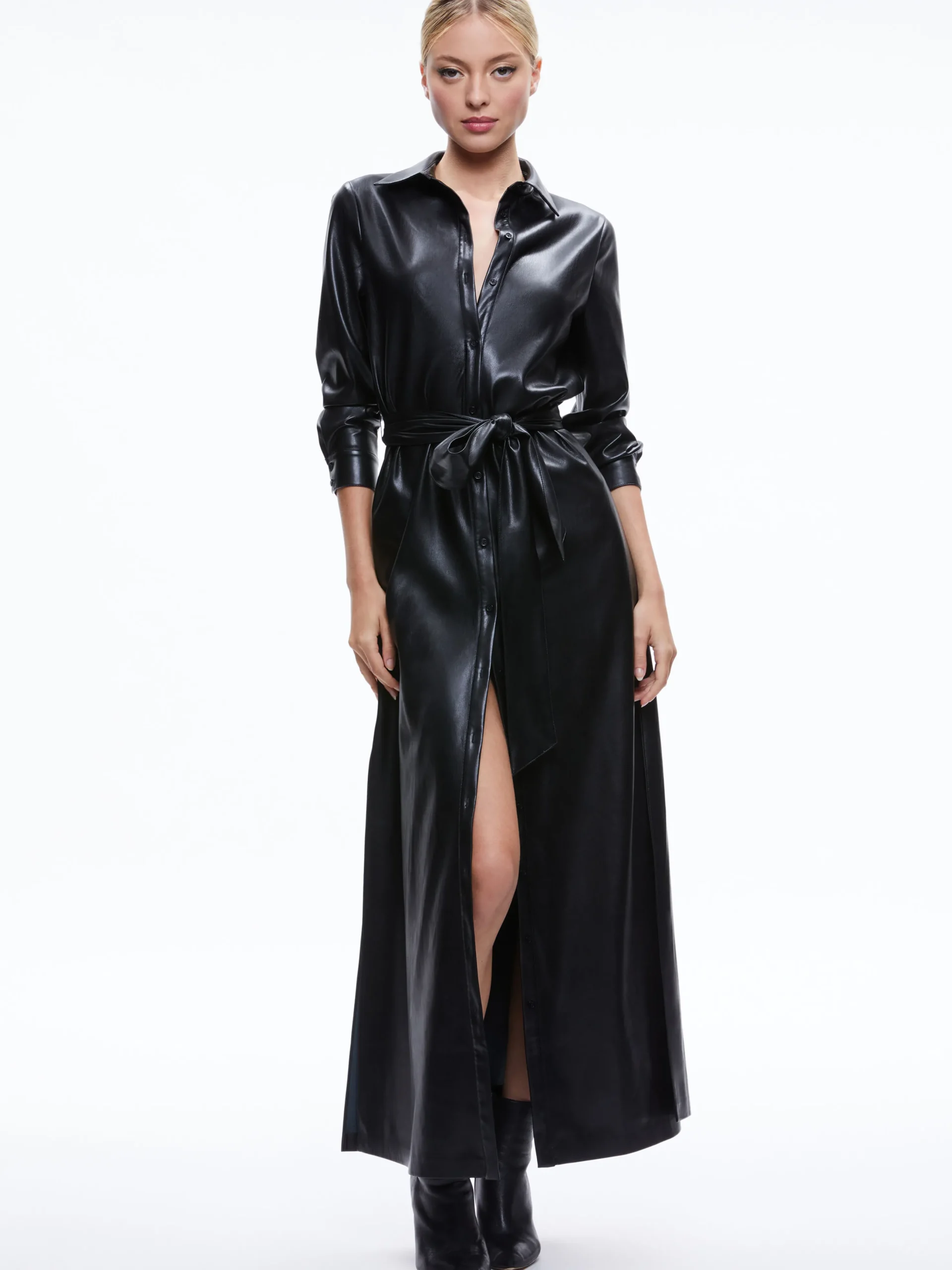 Alice and Olivia CHASSIDY VEGAN LEATHER MAXI SHIRT DRESS BLACK*FEATURED SHOPS | FEATURED SHOPS | DRESSES | CLOTHING