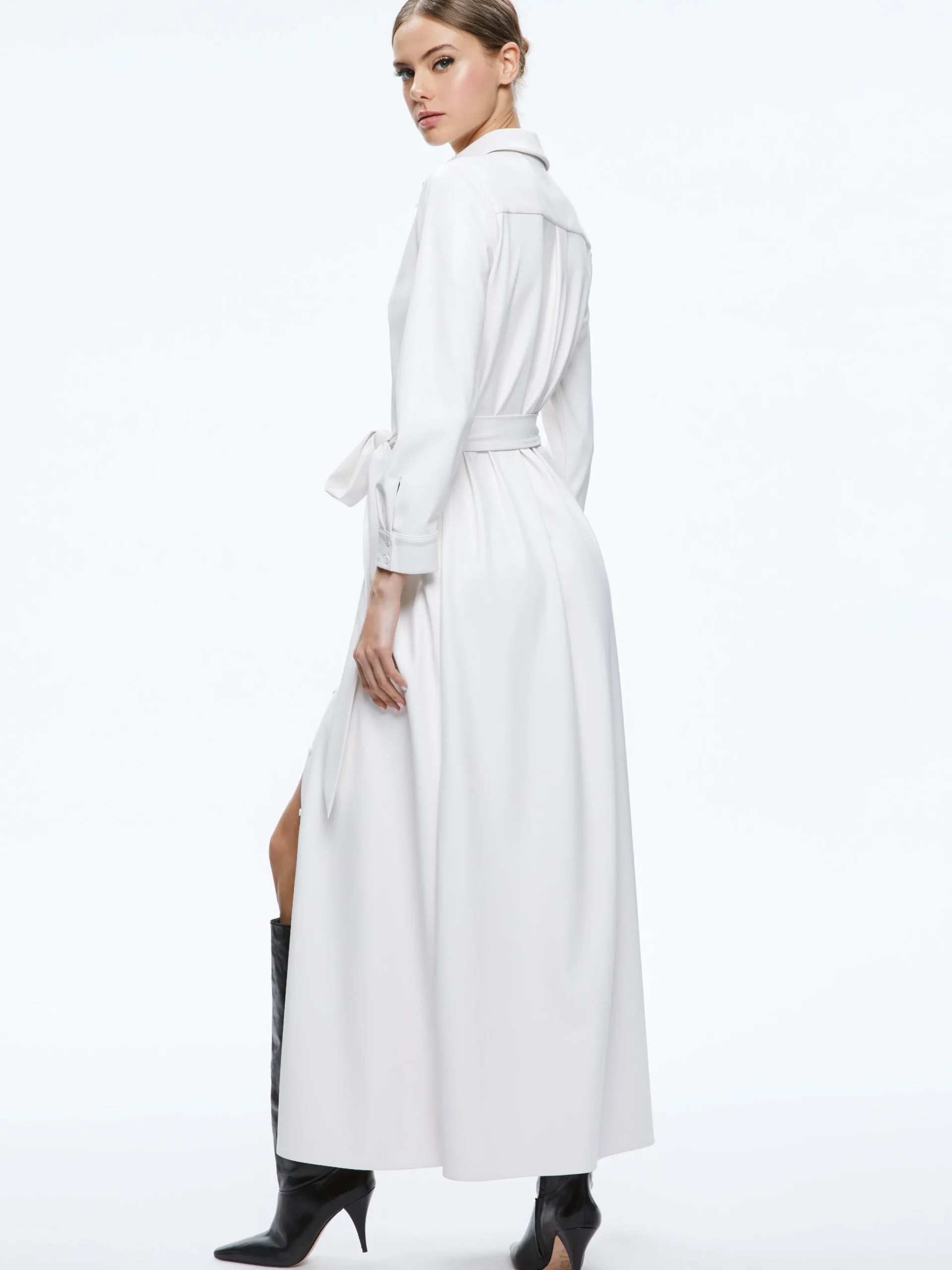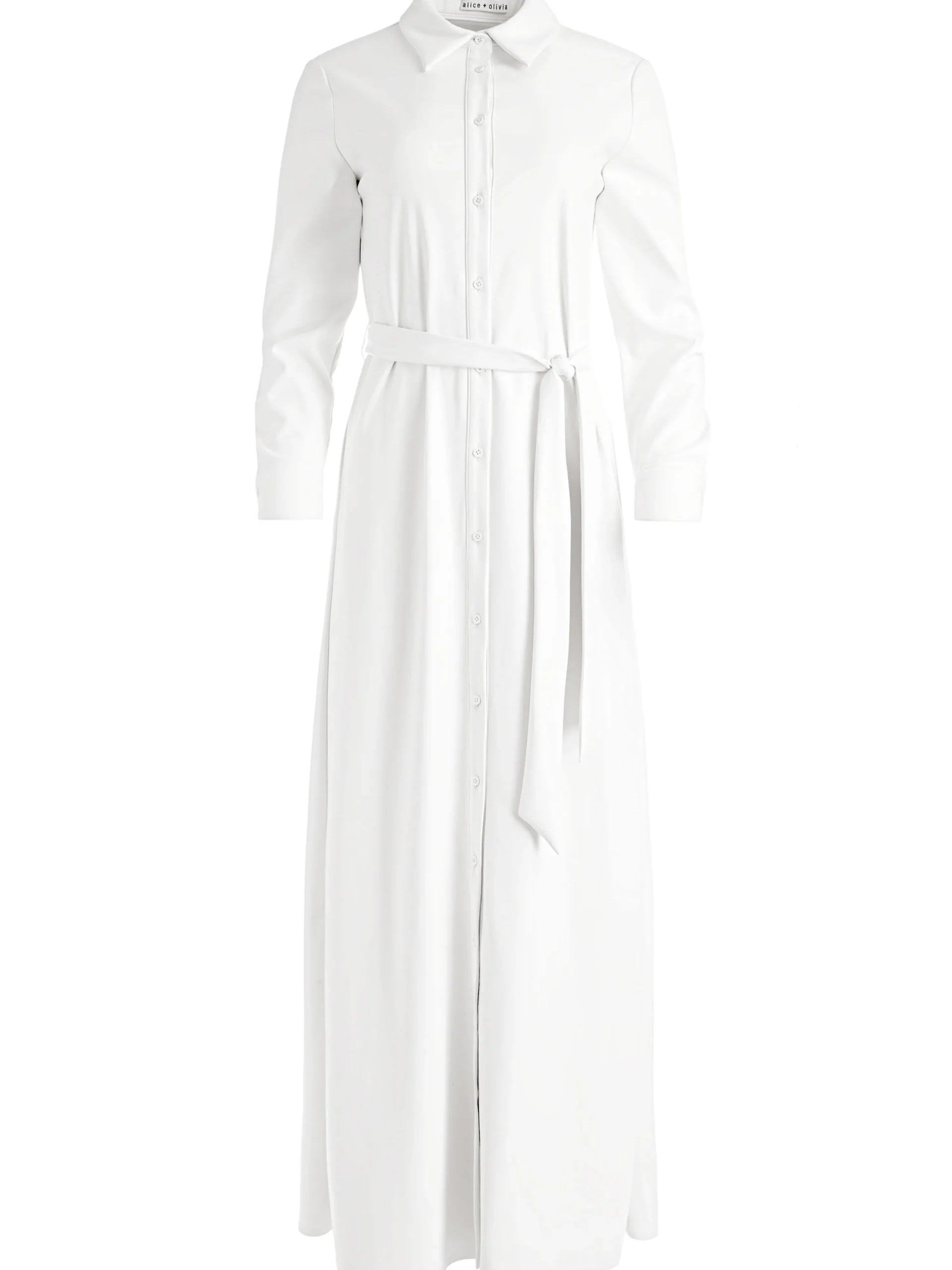 Alice and Olivia CHASSIDY VEGAN LEATHER MAXI SHIRT DRESS OFF WHITE*FEATURED SHOPS | DRESSES | CLOTHING