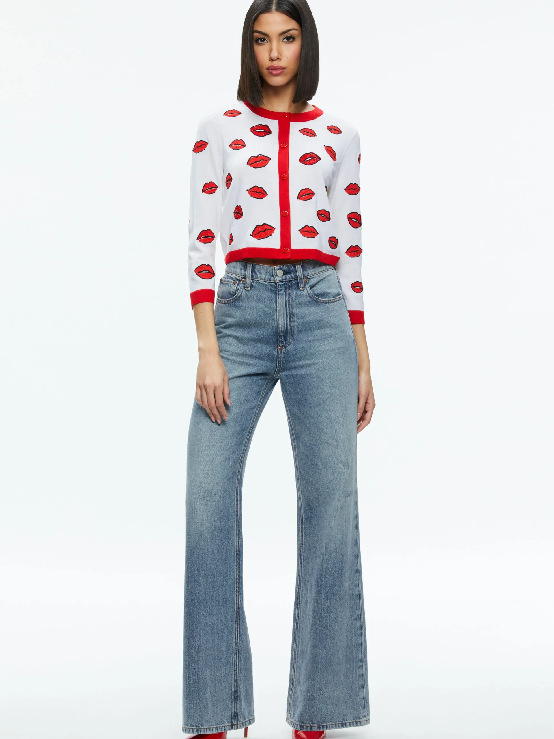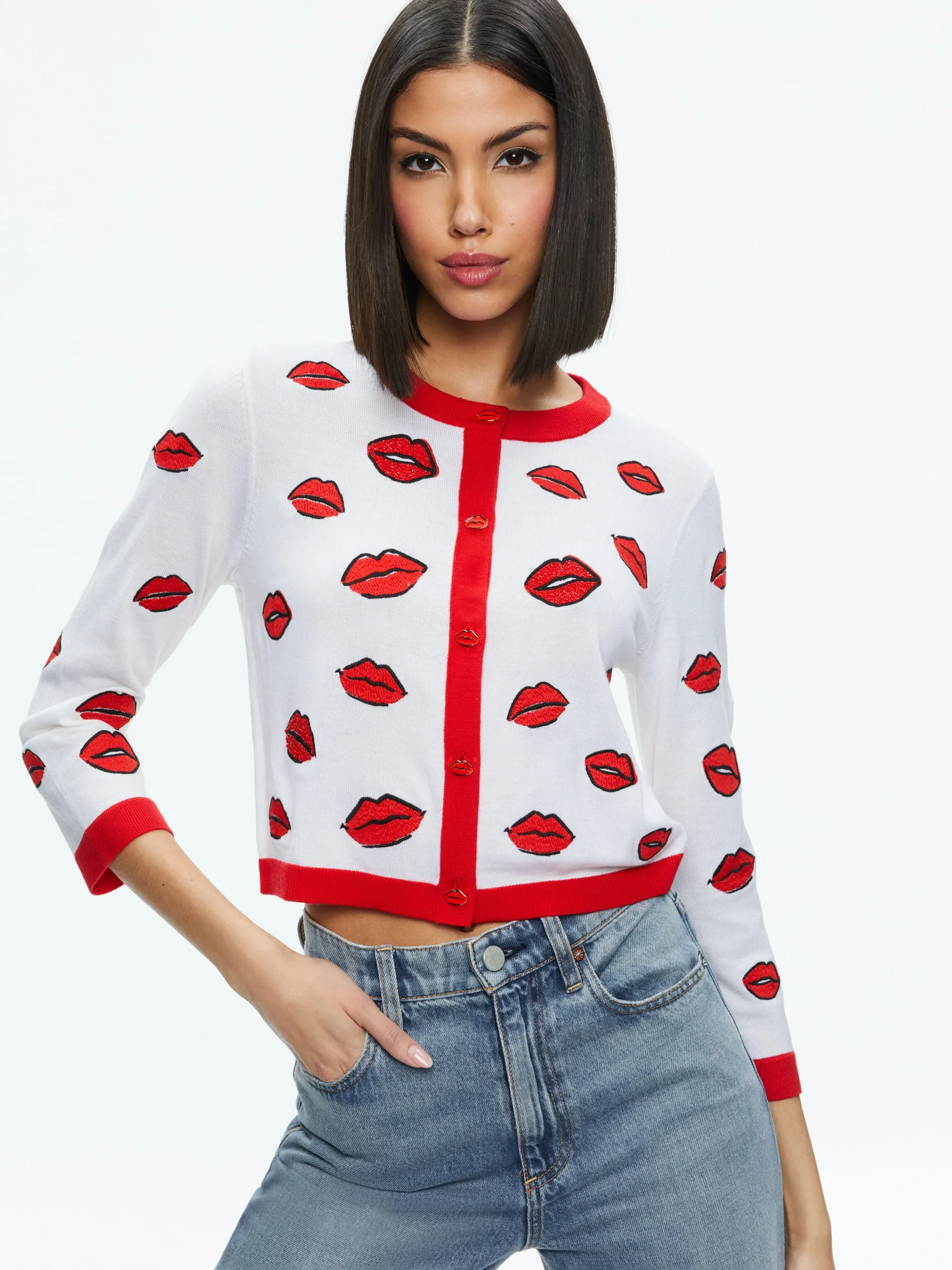 Alice and Olivia DARODA KISS CREWNECK CROPPED CARDIGAN SOFT WHITE MULTI*FEATURED SHOPS | FEATURED SHOPS | CLOTHING