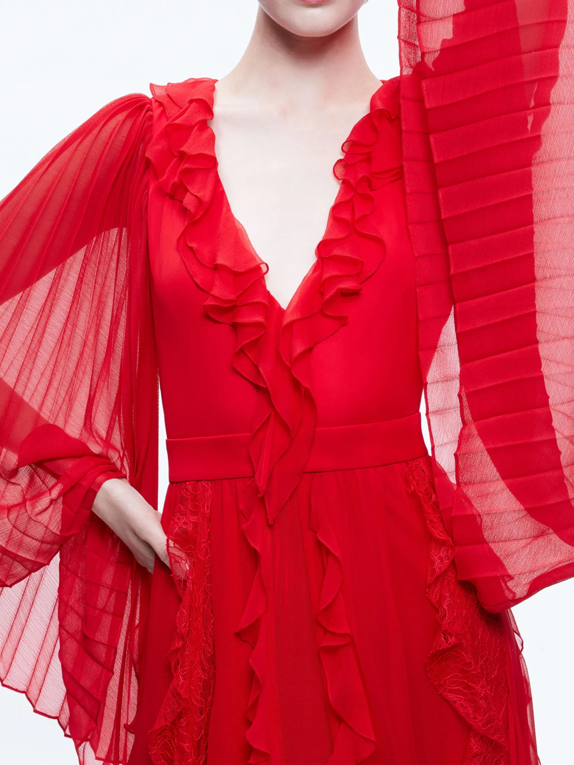 Alice and Olivia DAY SUNBURST SLEEVE MAXI DRESS PERFECT RUBY*DRESSES | DRESSES | CLOTHING