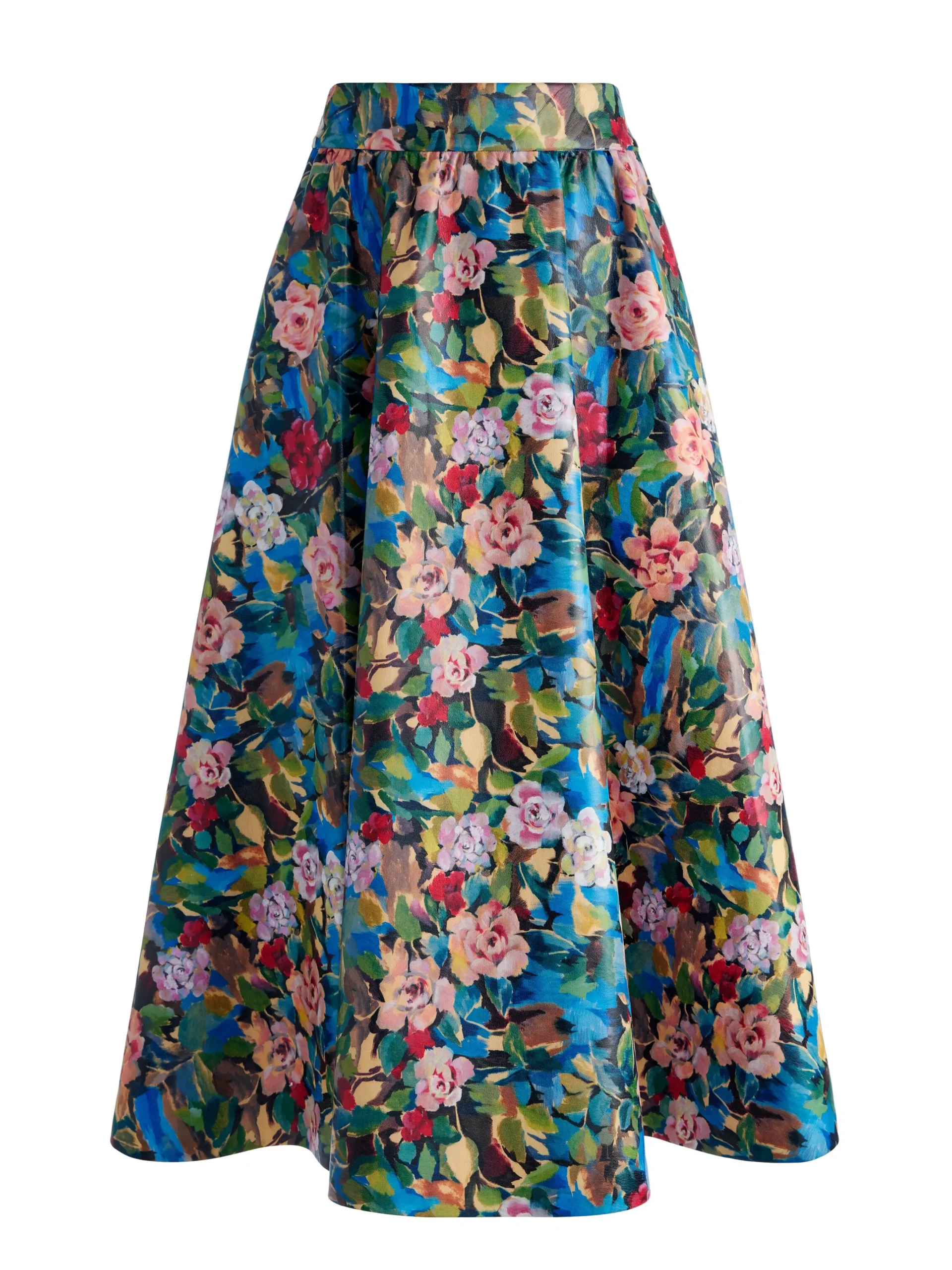 Alice and Olivia EARLA VEGAN LEATHER FLARE SKIRT BREEZE FLORAL*FEATURED SHOPS | CLOTHING
