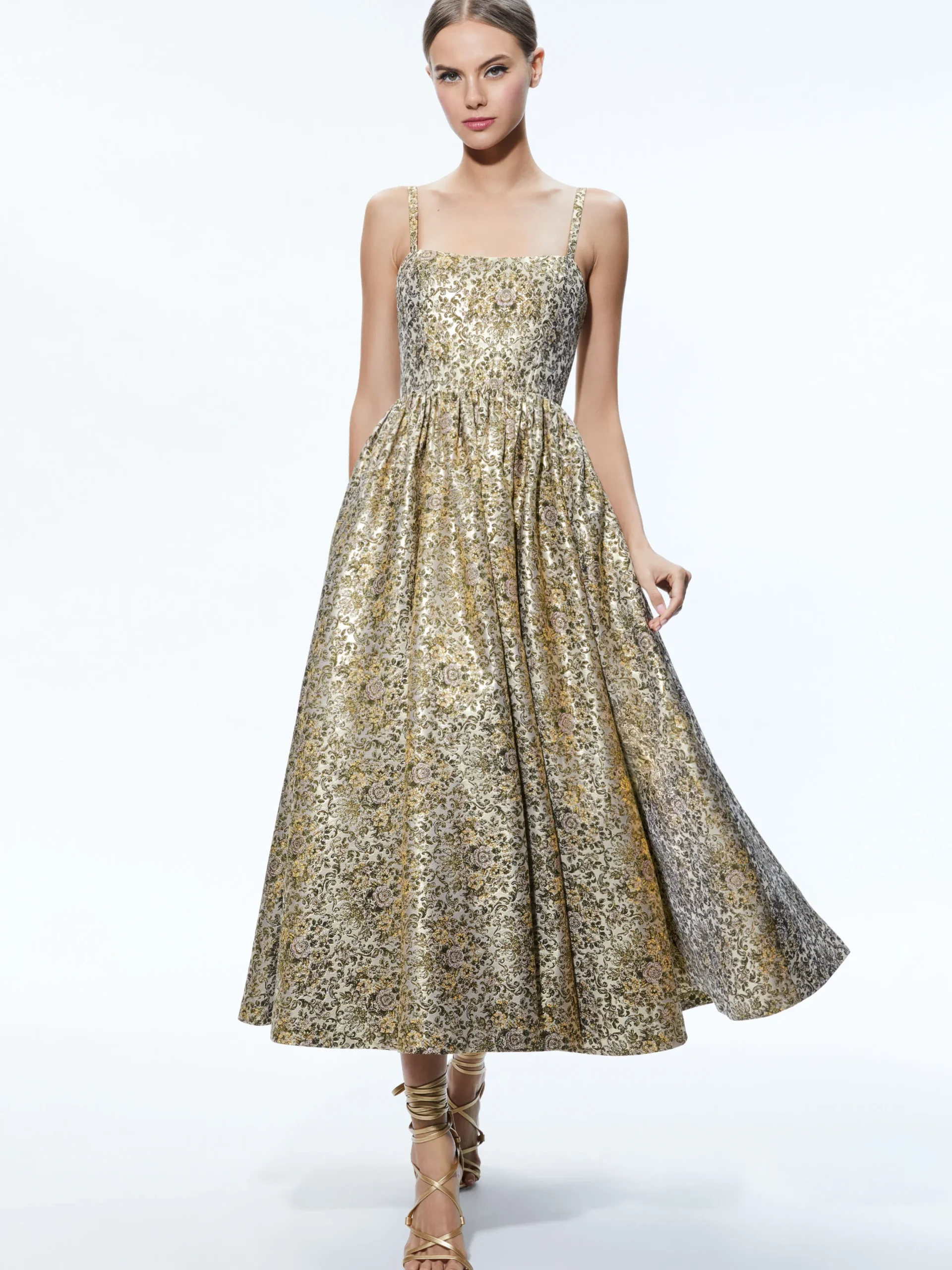 Alice and Olivia FAY MIDI DRESS CHAMPAGNE MULTI*DRESSES | DRESSES | CLOTHING