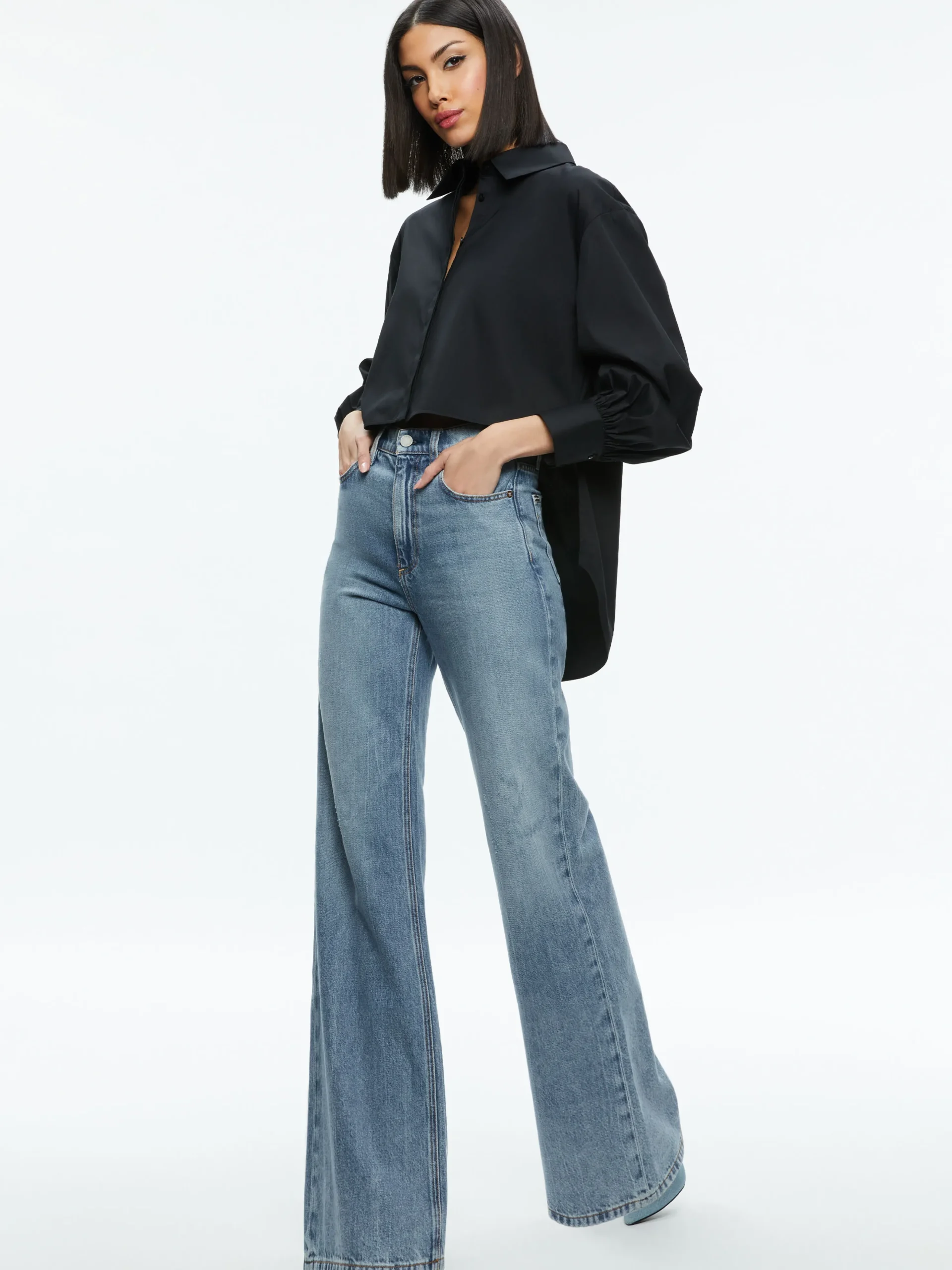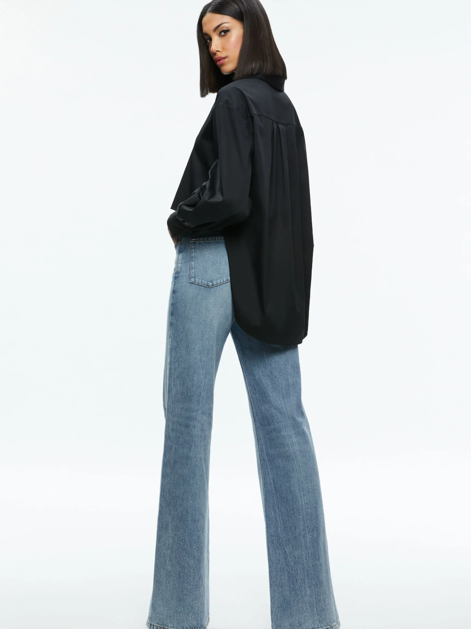 We took the classic button-down to a whole new level with Finely. She includes a high-low hem and dramatic cuffs to up the intrigue. Plus, her easy, oversized fit means she works over anything you pair her with.