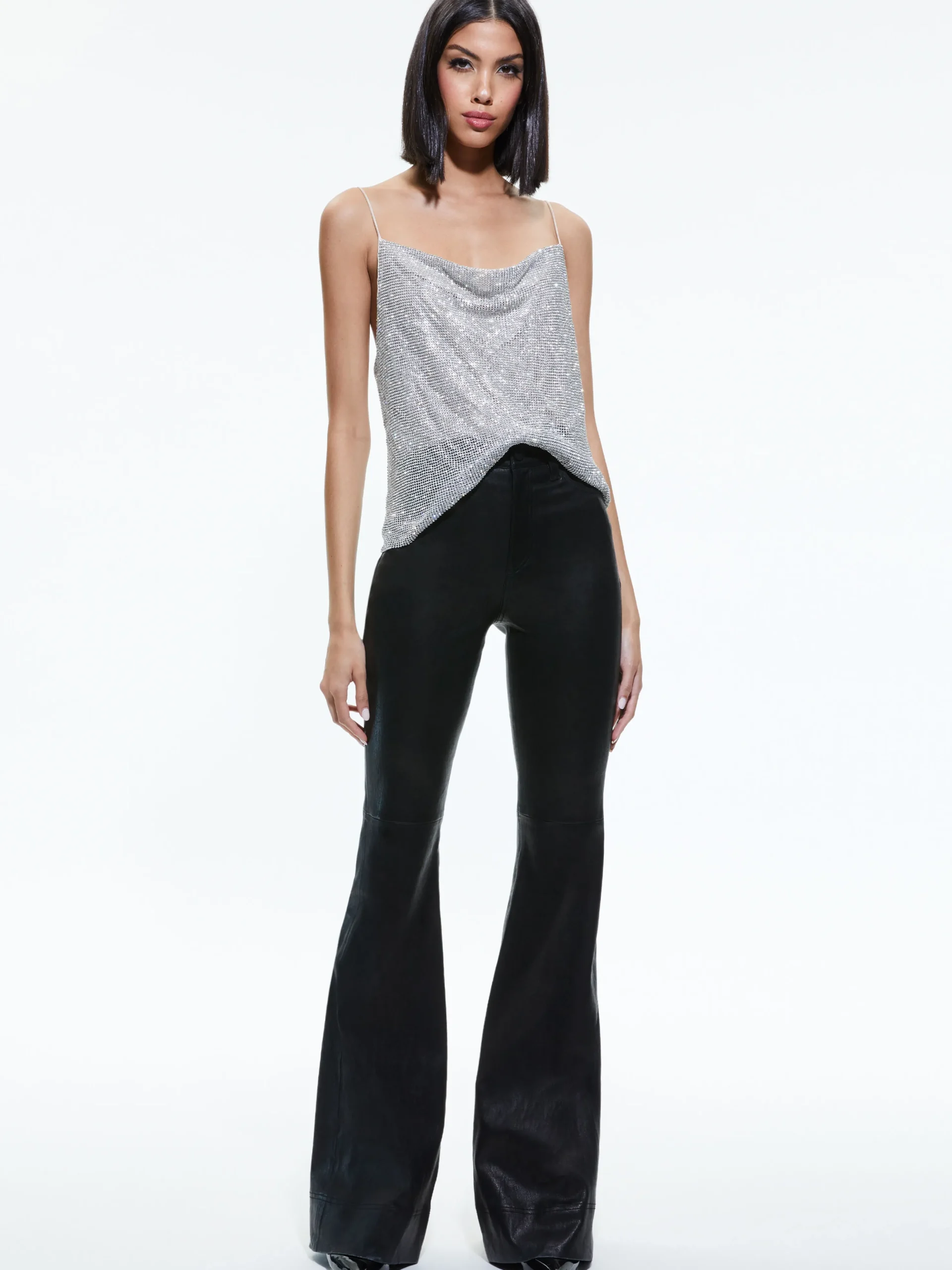 A drapey camisole that’s office and evening ready. So good under a blazer for day, seriously sexy on its own at night. Bonus: Crystals throughout. So luxe.