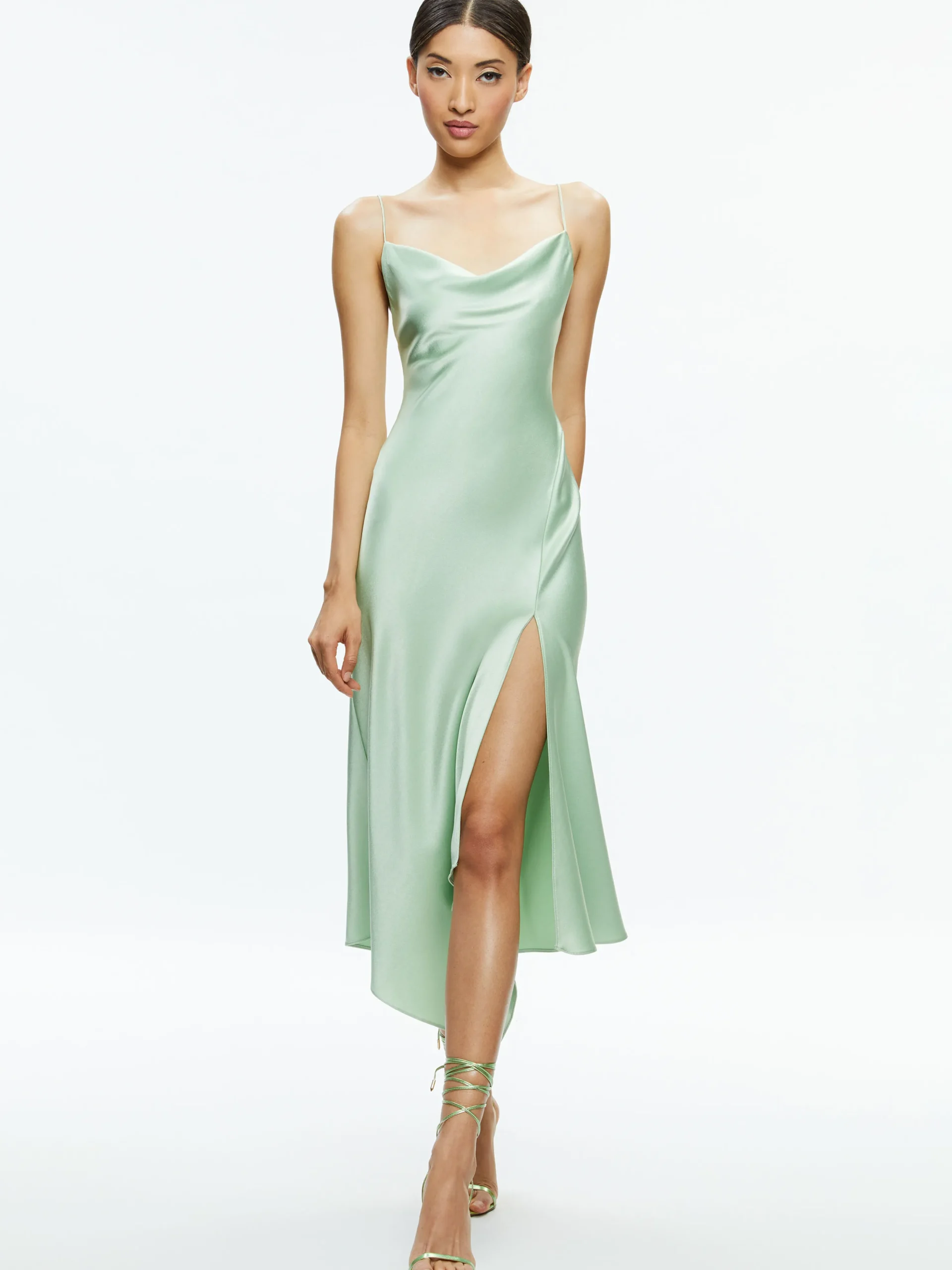 Alice and Olivia HARMONY DRAPEY ASYMMETRICAL MIDI DRESS GREEN TEA*DRESSES | CLOTHING