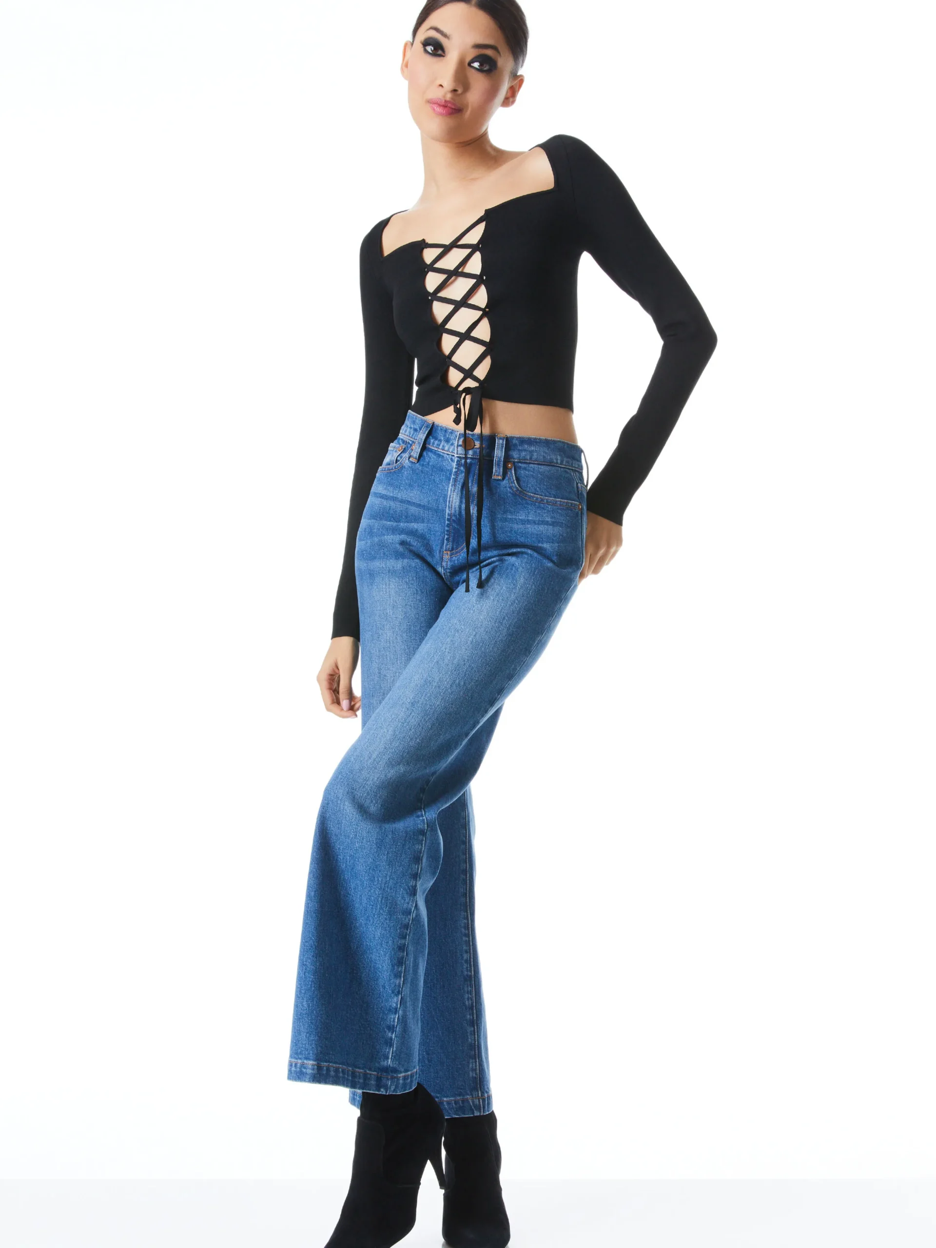 Alice and Olivia HILARIA LACE FRONT TOP *CLOTHING
