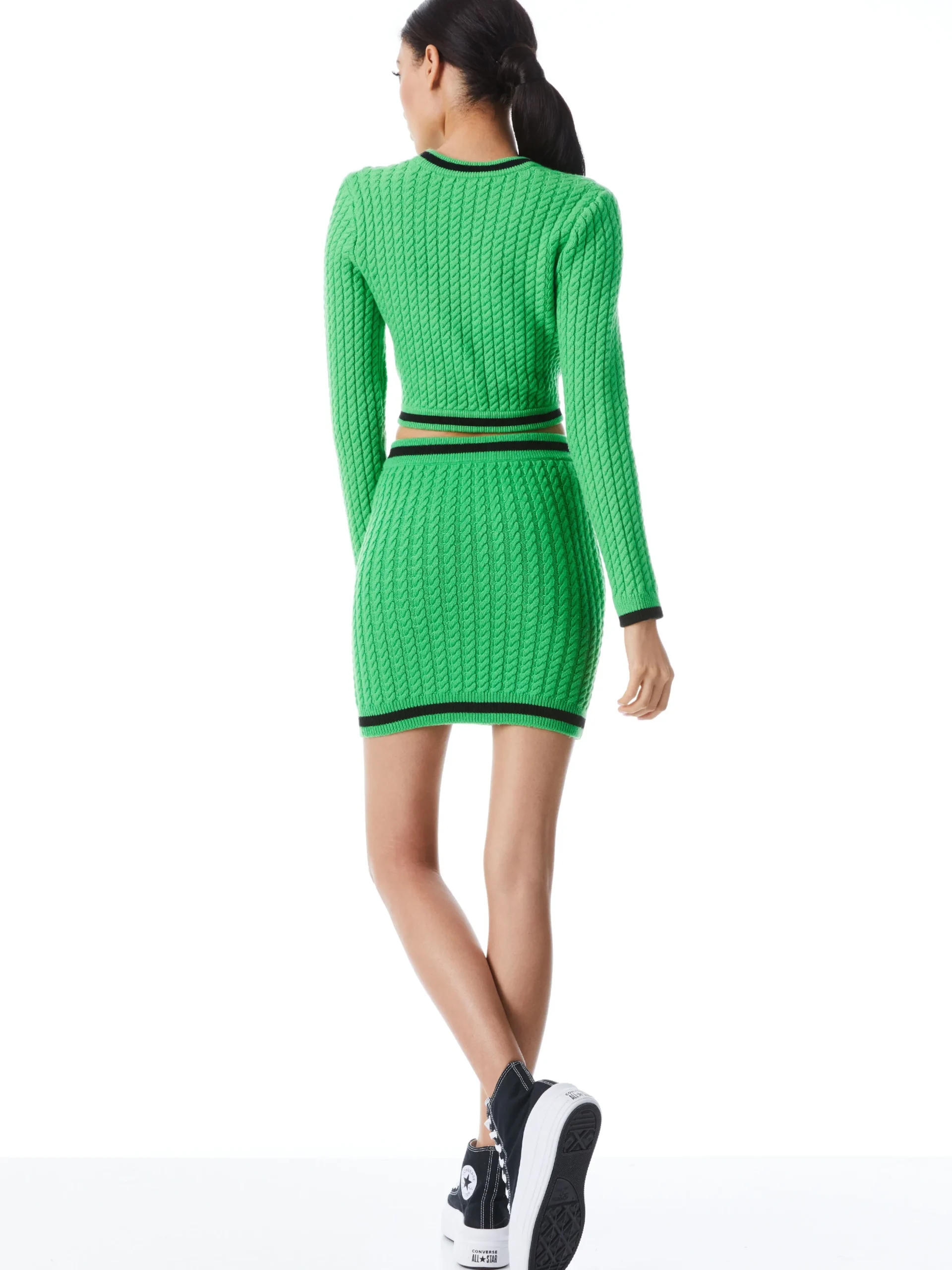 Alice and Olivia INGRID CABLE KNIT MINI SKIRT GARDEN GREEN/BLACK*FEATURED SHOPS | CLOTHING