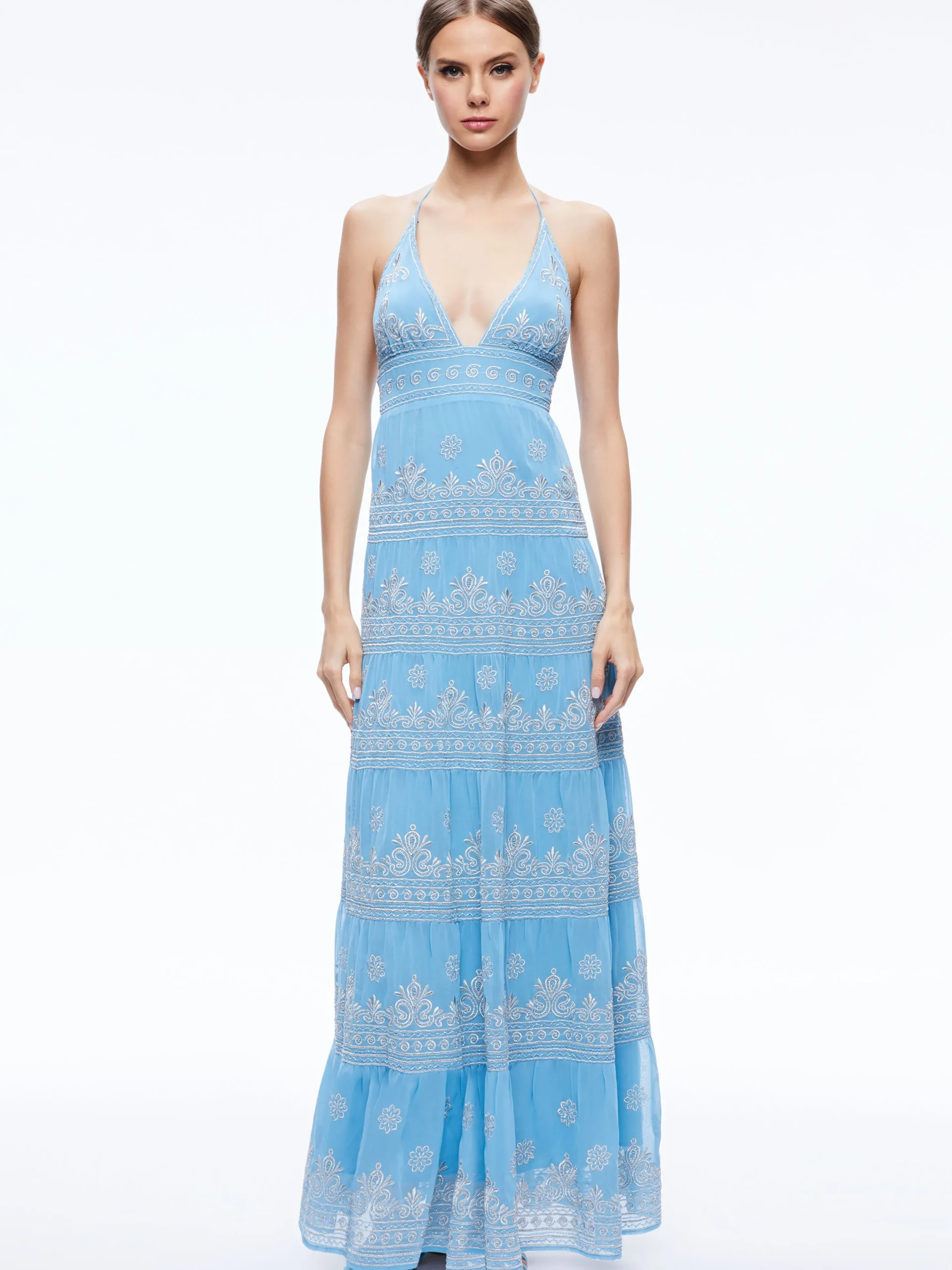 Alice and Olivia KAROLINA EMBROIDERED HALTER NECK MAXI DRESS *DRESSES | DRESSES | CLOTHING