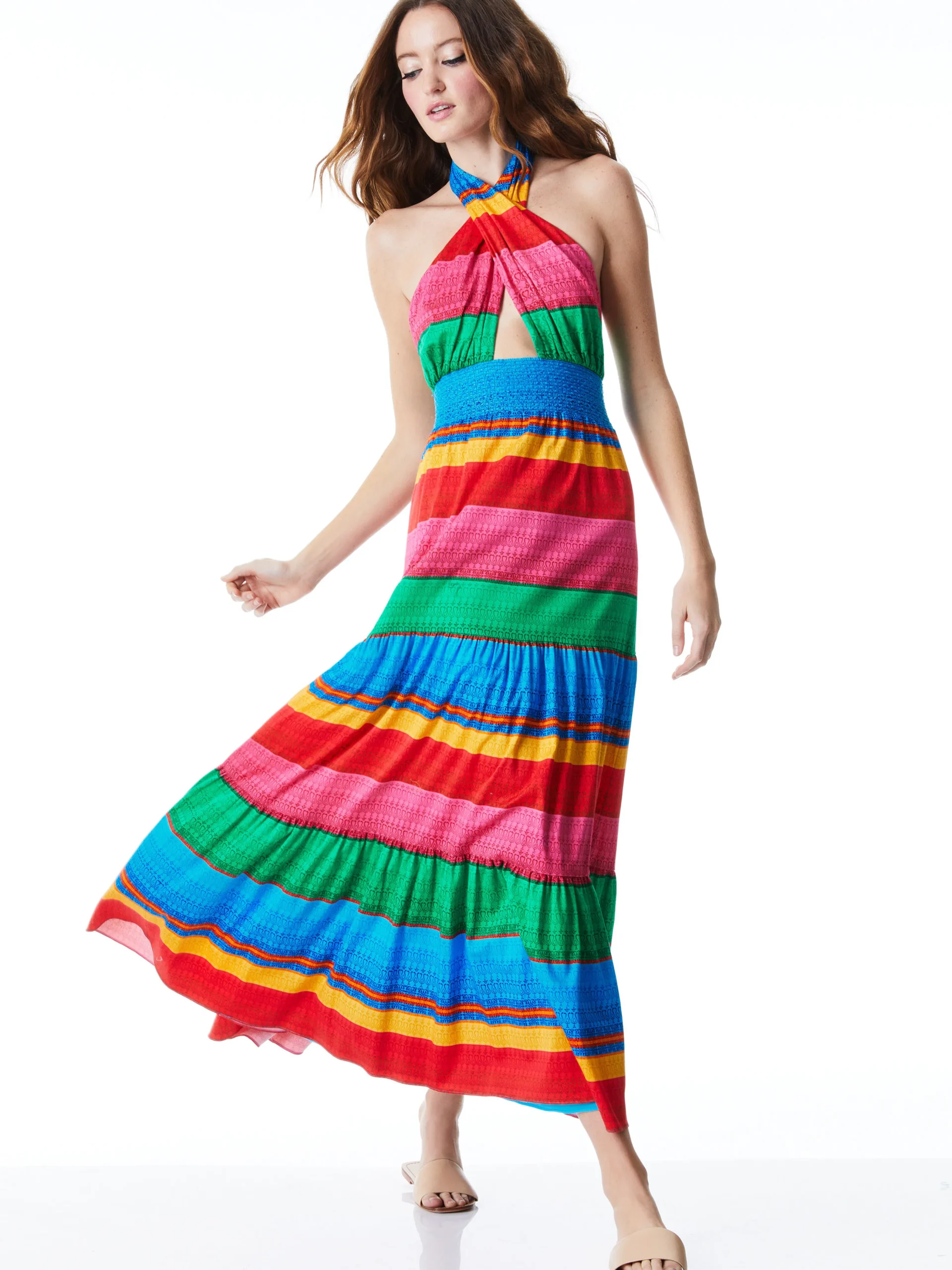 Alice and Olivia LYNDON CROSS FRONT MAXI DRESS CABO STRIPE*DRESSES | CLOTHING