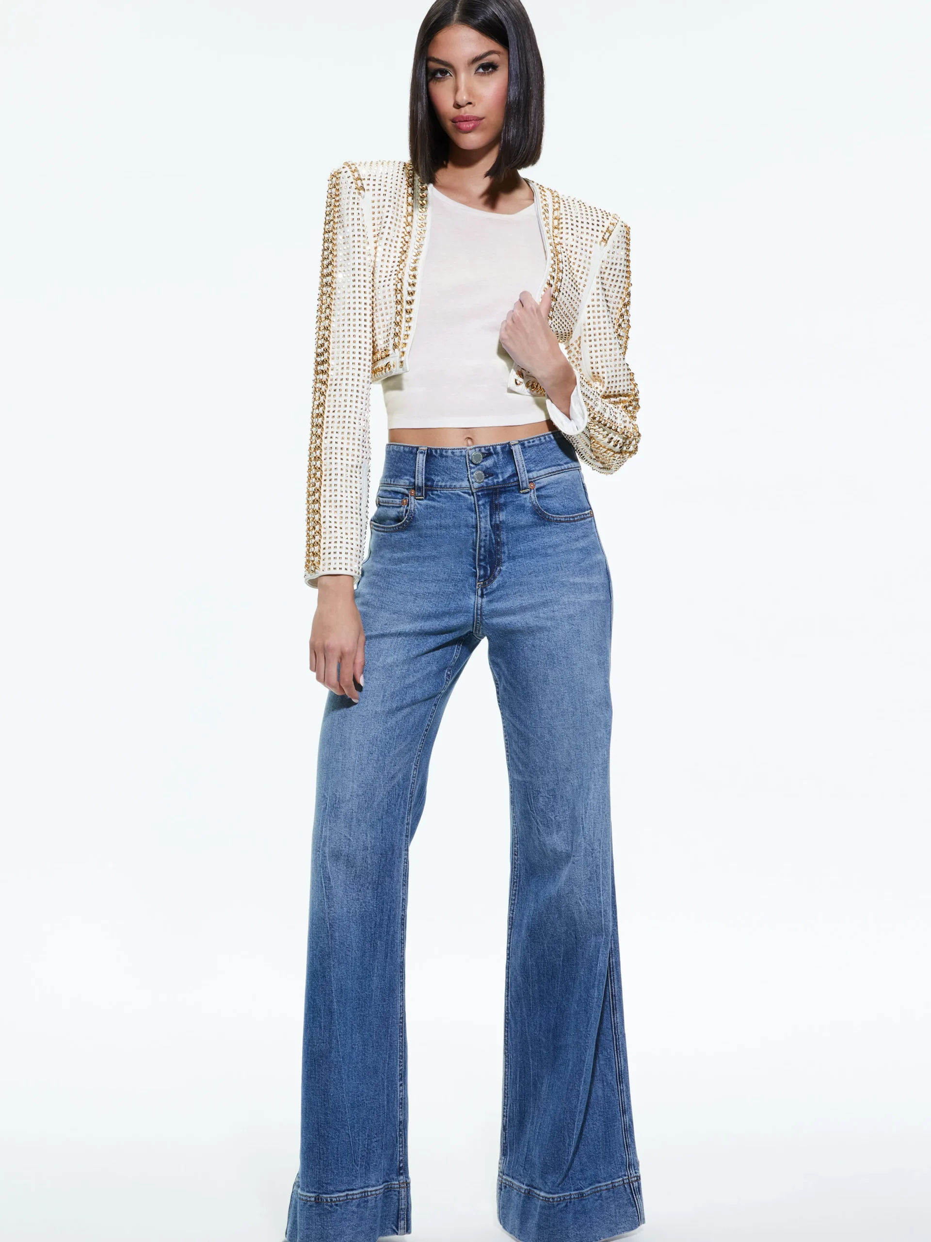 Alice and Olivia MAIRA CROPPED JACKET WITH CHAIN TRIM SOFT WHITE/PALE GOLD*CLOTHING