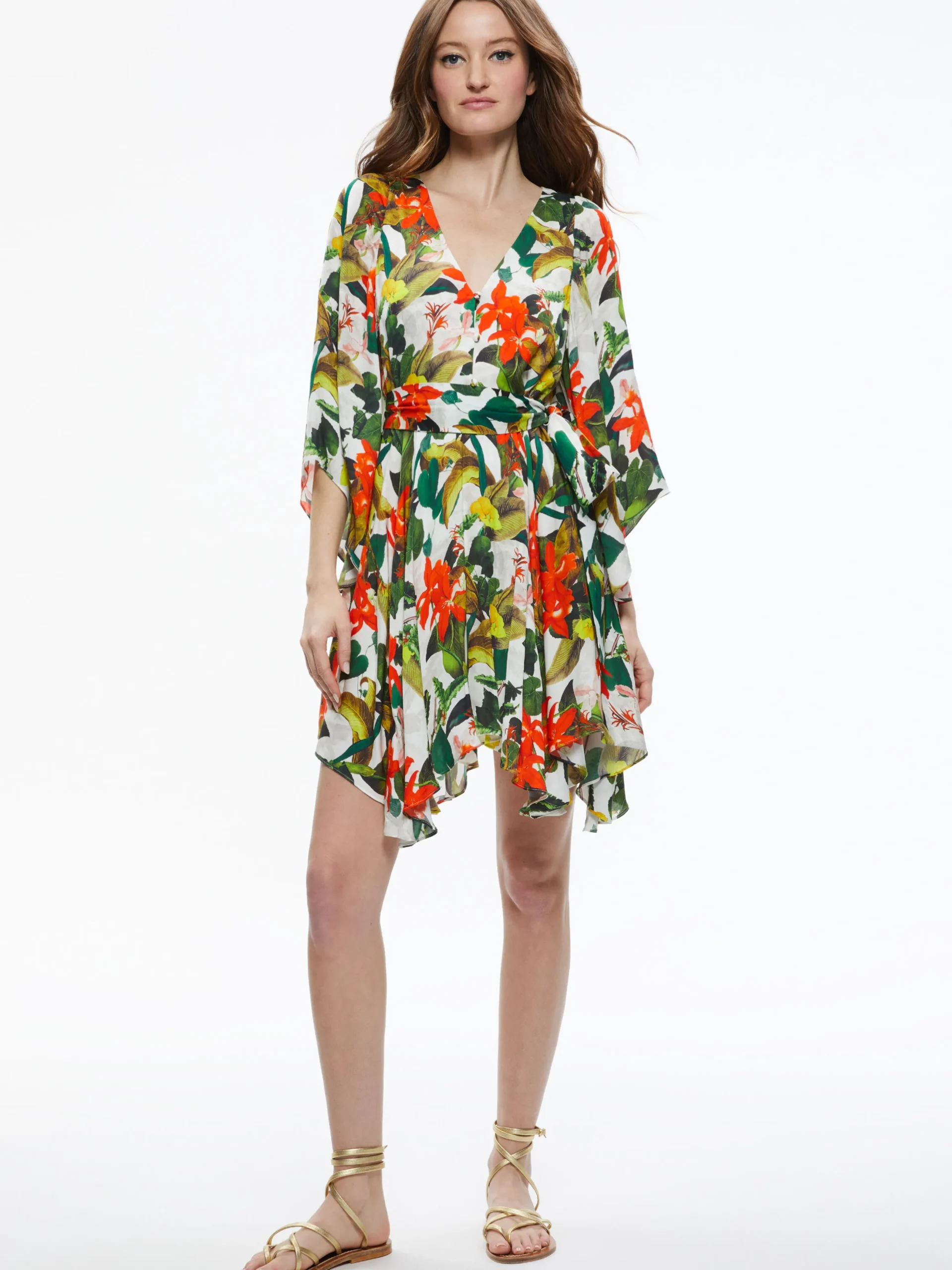 Alice and Olivia MARVA BELTED MINI DRESS TROPICAL SUNRISE OFF WHITE*DRESSES | CLOTHING