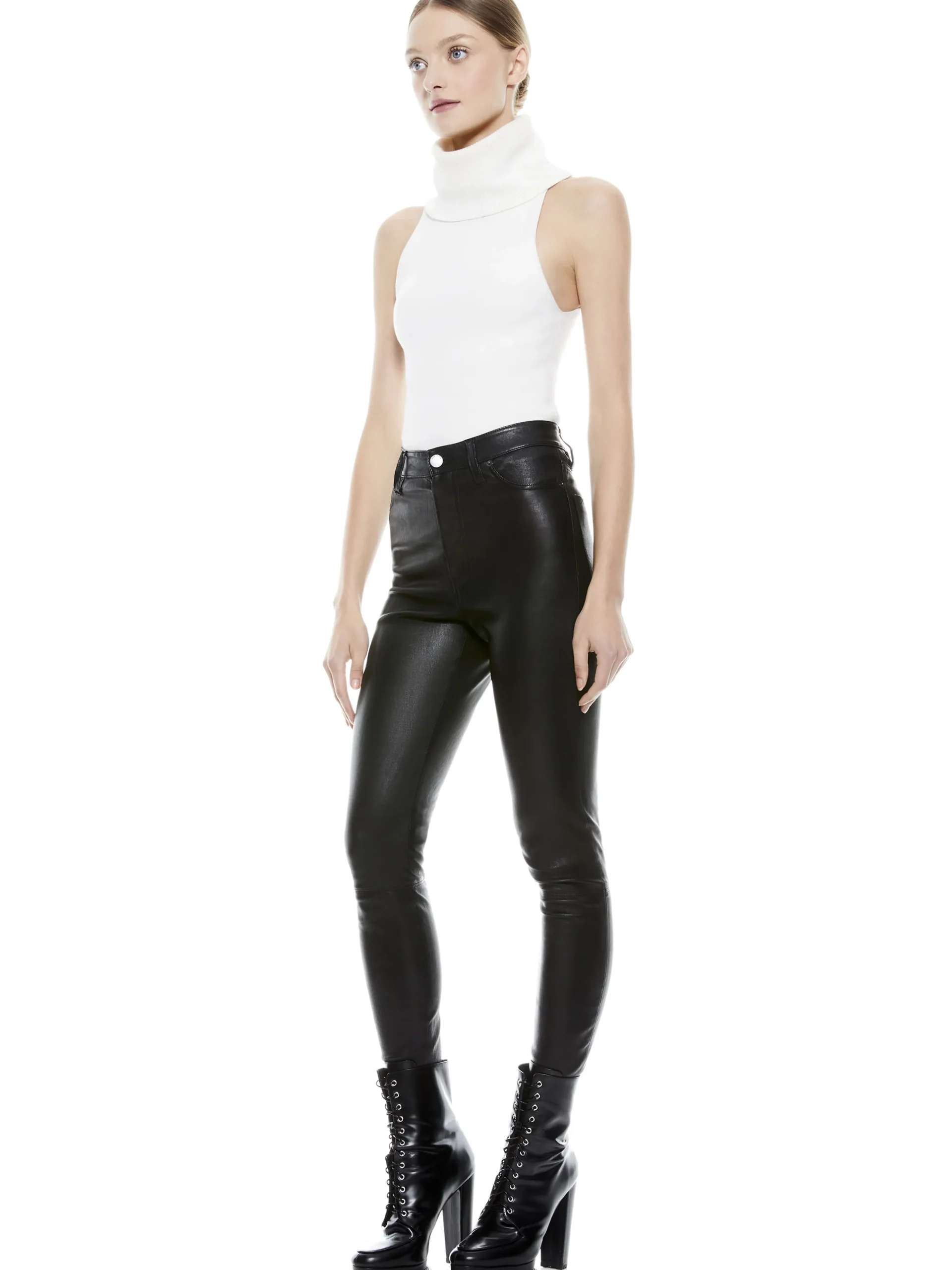 Alice and Olivia MIKAH SINGLE BUTTON LEATHER PANT BLACK*CLOTHING
