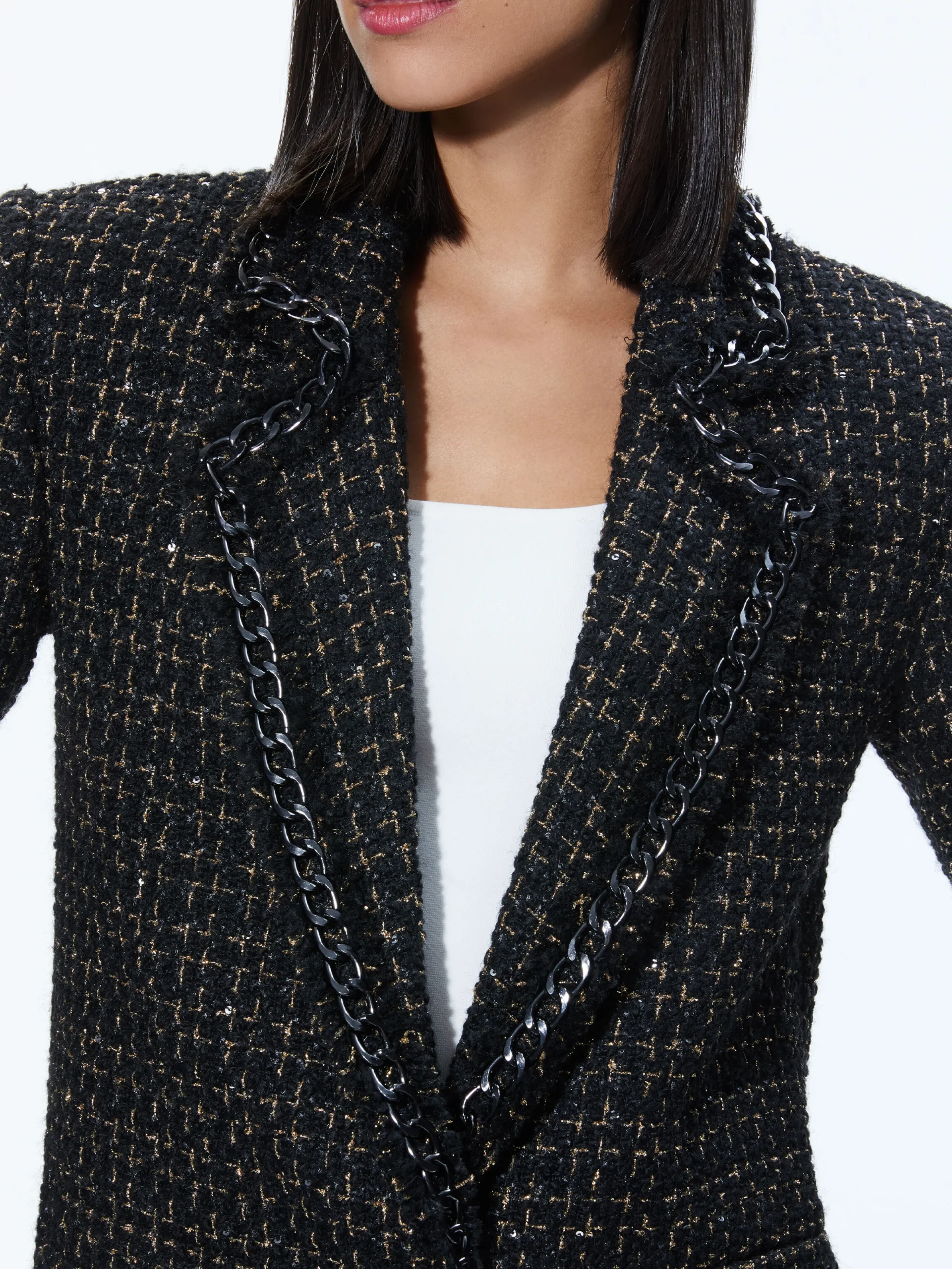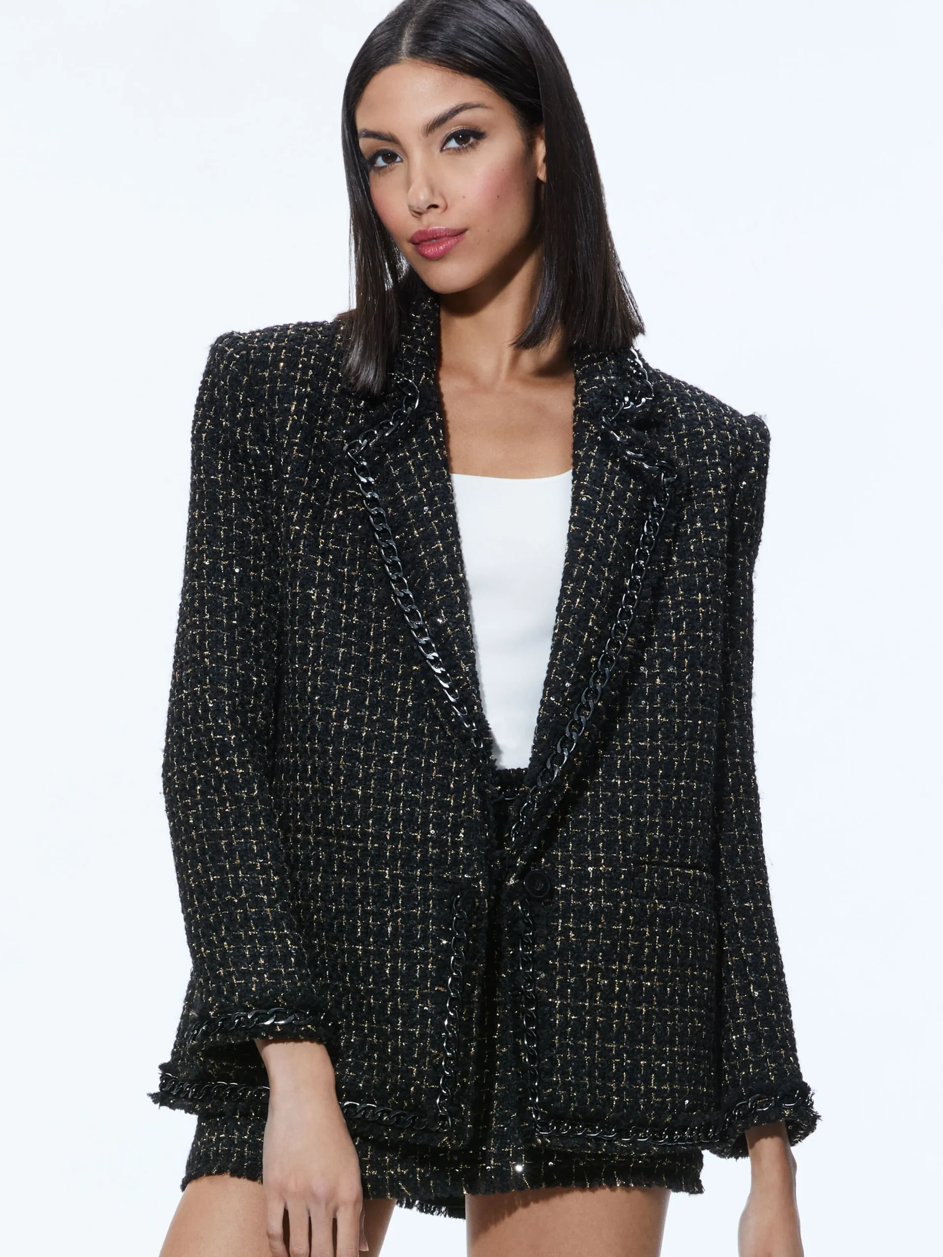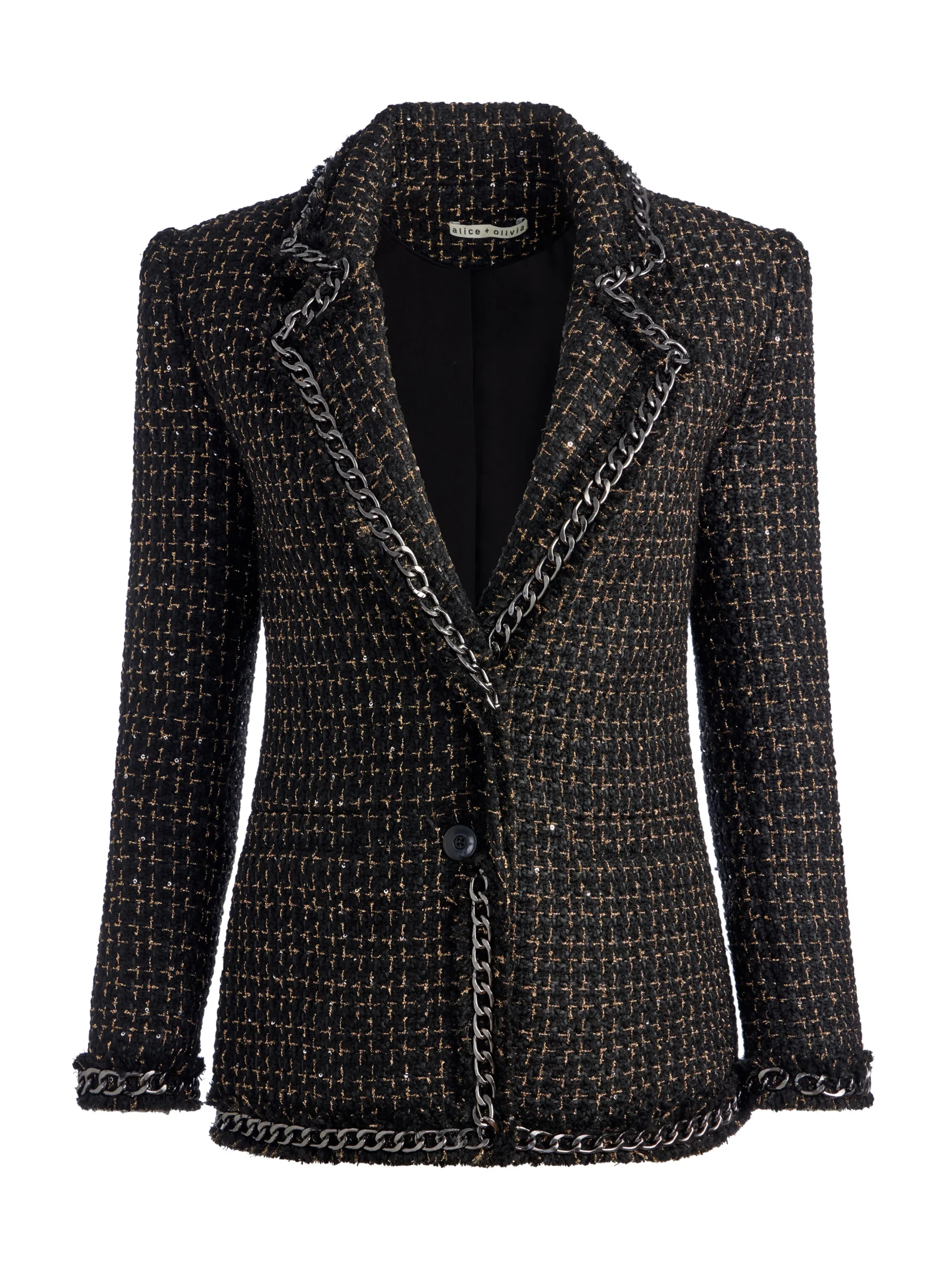 Alice and Olivia SHAN TWEED CHAIN TRIM BLAZER BLACK/GOLD*CLOTHING | CLOTHING