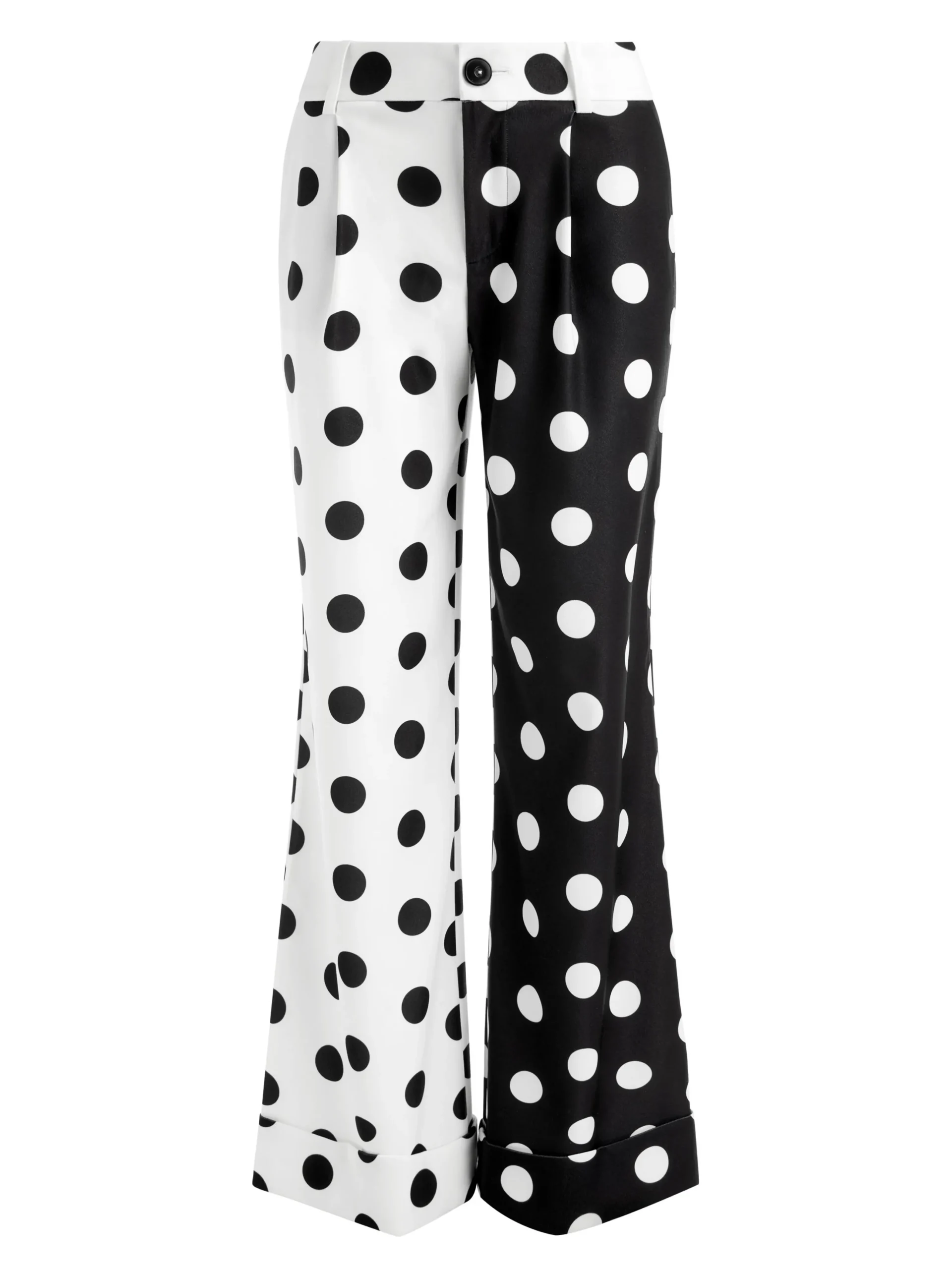 This pant was made with fun in mind. Tomasa includes an easy wide leg, front pleats, cuffs at the hem and high front rise. The polka dot print takes this pant to the next level.