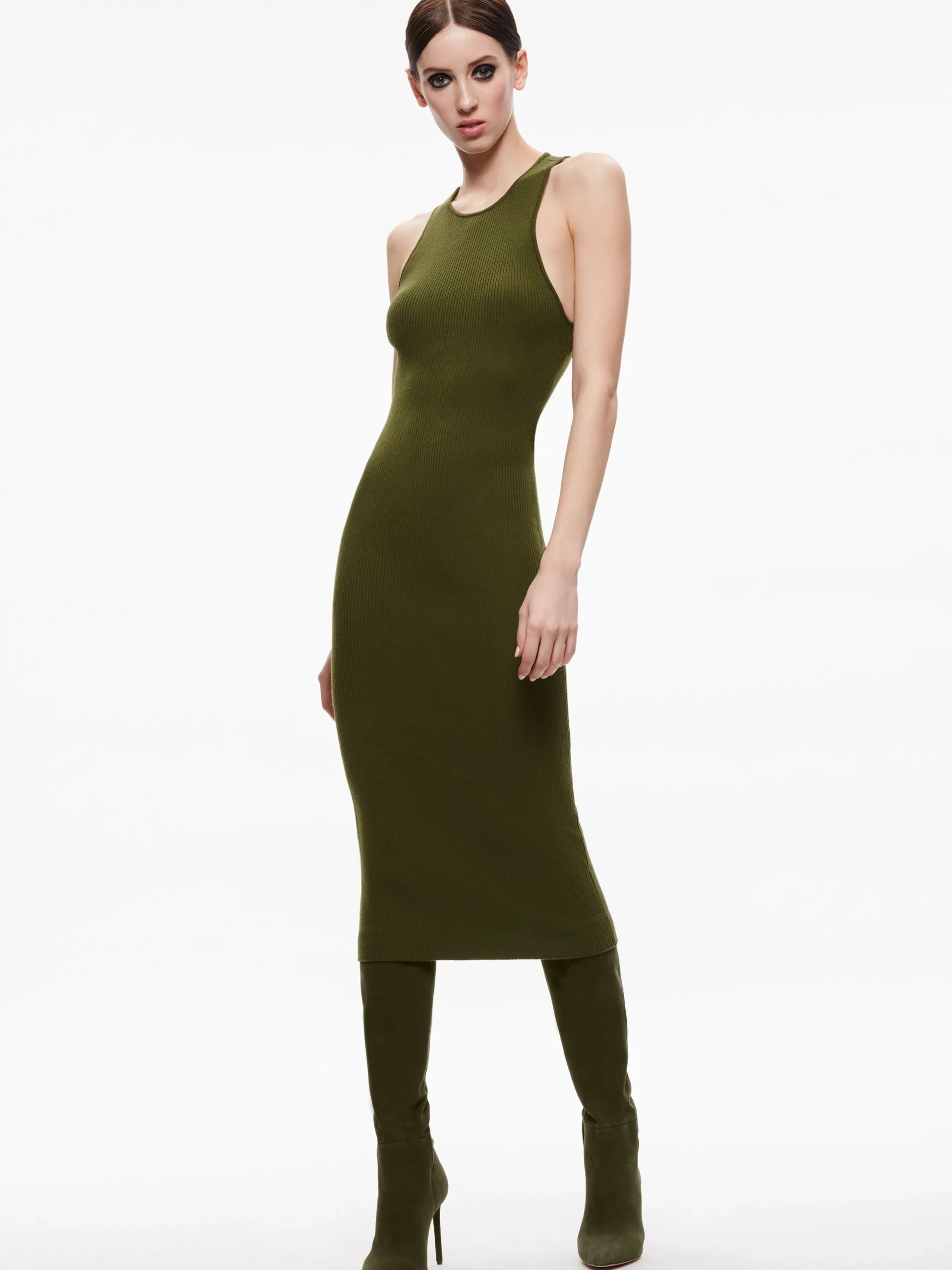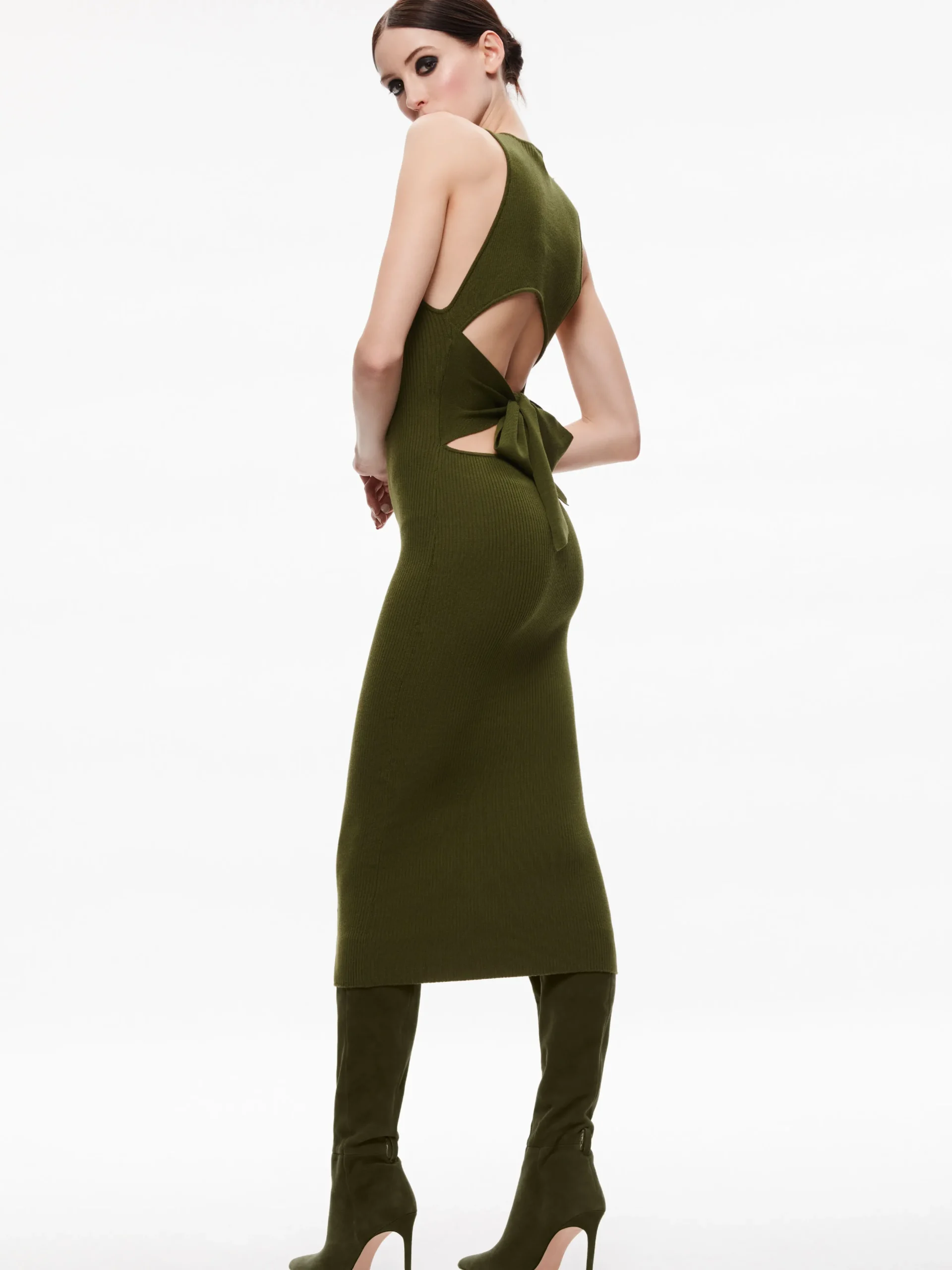 Alice and Olivia WRIGHT TIE BACK DRESS OLIVE*DRESSES | CLOTHING